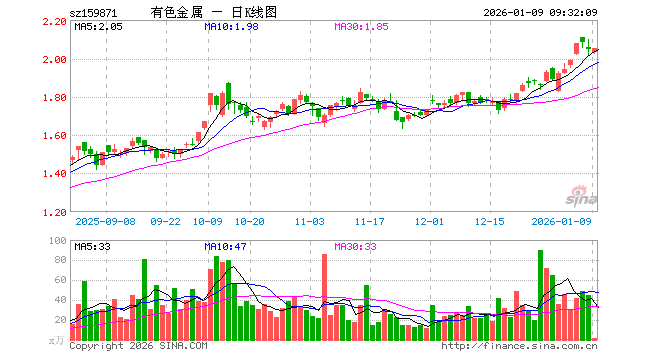 1月9日,有色金属ETF(159871)开盘跌0.83%,报2.030元。有色金属ETF(159871)重仓股方面,紫金矿业开盘跌0.83%,北方稀土跌0.43%,洛阳钼业跌1.06%,华友钴业跌1.48%,山东黄金跌0.92%,赣锋锂业跌0.80%,中国铝业跌1.17%,中金黄金涨0.25%,赤峰黄金跌0.20%,天齐锂业跌1.40%。