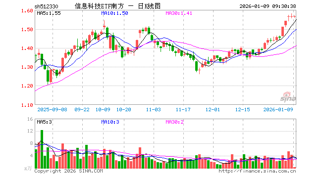 1月9日,信息科技ETF南方(512330)开盘跌0.26%,报1.561元。信息科技ETF南方(512330)重仓股方面,胜宏科技开盘跌1.59%,华工科技跌0.91%,芯原股份跌0.06%,指南针跌1.00%,通富微电涨0.55%,润和软件跌0.49%,瑞芯微跌0.98%,长川科技跌2.15%,协创数据跌0.73%,华海清科跌0.16%。