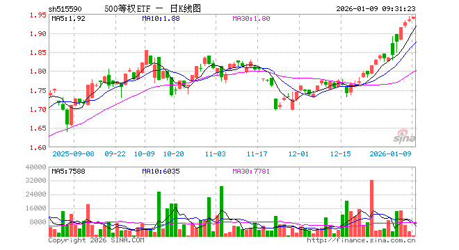 1月9日,500等权ETF(515590)开盘涨0.10%,报1.937元。500等权ETF(515590)重仓股方面,巨人网络开盘跌0.02%,先导智能跌0.02%,指南针跌1.00%,英维克跌0.44%,胜宏科技跌1.59%,东阳光涨0.00%,长川科技跌2.15%,江波龙跌2.64%,卧龙电驱跌0.30%,华工科技跌0.91%。
