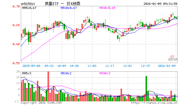 1月9日,质量ETF(515910)开盘涨0.00%,报0.669元。质量ETF(515910)重仓股方面,中际旭创开盘跌3.28%,立讯精密跌0.56%,新易盛跌3.25%,阳光电源跌0.92%,北方华创跌0.72%,迈瑞医疗涨0.14%,药明康德涨0.52%,山西汾酒涨1.63%,五粮液涨0.14%,泸州老窖涨0.85%。