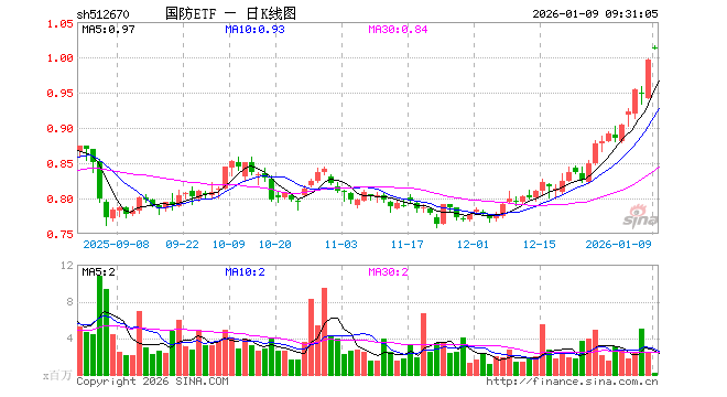 国防ETF(512670)业绩比较基准为中证国防指数收益率,管理人为鹏华基金管理有限公司,基金经理为陈龙,成立(2019-07-05)以来回报为98.62%,近一个月回报为24.31%。