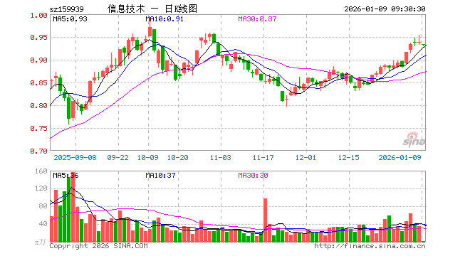 信息技术ETF(159939)业绩比较基准为中证全指信息技术指数,管理人为广发基金管理有限公司,基金经理为霍华明,成立(2015-01-08)以来回报为88.02%,近一个月回报为7.65%。