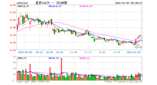 医药50ETF(512120)业绩比较基准为中证细分医药产业主题指数收益率,管理人为华安基金管理有限公司,基金经理为苏卿云,成立(2013-12-04)以来回报为42.98%,近一个月回报为1.84%。