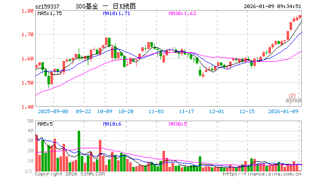 1月9日,中证500ETF东财(159337)开盘跌0.17%,报1.765元。中证500ETF东财(159337)重仓股方面,胜宏科技开盘跌1.59%,华工科技跌0.91%,先导智能跌0.02%,芯原股份跌0.06%,巨人网络跌0.02%,指南针跌1.00%,卧龙电驱跌0.30%,欣旺达涨0.04%,赤峰黄金跌0.20%,通富微电涨0.55%。