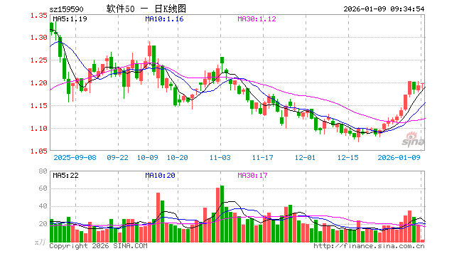 1月9日,软件50ETF(159590)开盘涨0.25%,报1.196元。软件50ETF(159590)重仓股方面,科大讯飞开盘跌0.49%,同花顺跌0.31%,金山办公跌0.16%,指南针跌1.00%,恒生电子跌0.06%,润和软件跌0.49%,三六零跌0.79%,拓维信息跌1.78%,用友网络跌0.72%。