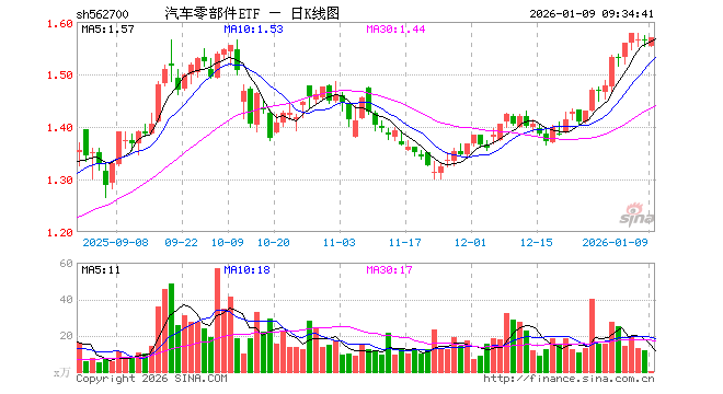 1月9日,汽车零部件ETF(562700)开盘跌0.64%,报1.553元。汽车零部件ETF(562700)重仓股方面,汇川技术开盘跌0.15%,福耀玻璃涨0.57%,三花智控跌0.29%,拓普集团涨0.00%,德赛西威跌0.61%,长盈精密跌0.54%,赛轮轮胎涨0.06%,银轮股份跌1.79%,均胜电子跌0.54%,双环传动跌0.35%。