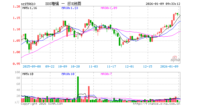 500ETF增强(159610)业绩比较基准为中证500指数收益率,管理人为景顺长城基金管理有限公司,基金经理为张晓南、郭琳,成立(2021-12-13)以来回报为16.16%,近一个月回报为7.98%。