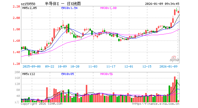 1月9日,半导体设备ETF易方达(159558)开盘跌1.98%,报2.076元。半导体设备ETF易方达(159558)重仓股方面,中微公司开盘跌3.89%,北方华创跌0.72%,长川科技跌2.15%,沪硅产业跌1.90%,华海清科跌0.16%,拓荆科技跌1.23%,南大光电跌2.33%,安集科技跌1.07%,中科飞测跌0.01%,芯源微跌5.06%。