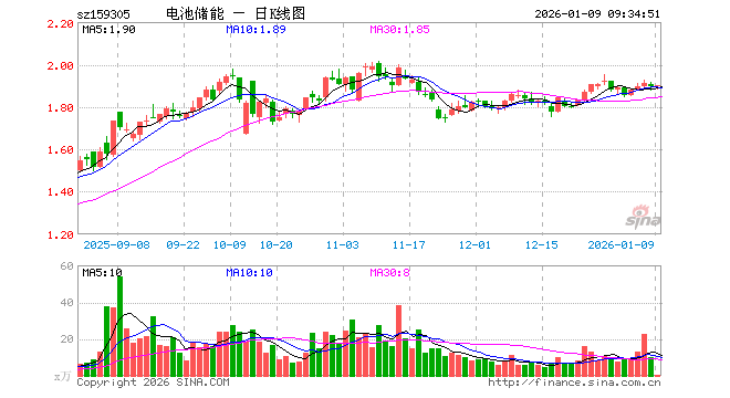 1月9日,储能电池ETF广发(159305)开盘涨0.05%,报1.896元。储能电池ETF广发(159305)重仓股方面,阳光电源开盘跌0.92%,亿纬锂能涨0.00%,宁德时代跌0.01%,国轩高科涨0.05%,英维克跌0.44%,科达利涨0.27%,德业股份跌0.26%,科华数据涨1.79%,巨星科技涨0.31%,锦浪科技涨0.21%。