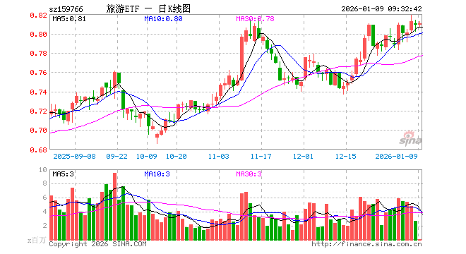 1月9日,旅游ETF(159766)开盘涨0.00%,报0.809元。旅游ETF(159766)重仓股方面,中国中免开盘涨0.96%,上海机场涨0.18%,中国东航跌0.65%,宋城演艺涨0.00%,南方航空跌0.37%,中国国航涨0.00%,华侨城A跌0.38%,锦江酒店跌0.23%,春秋航空涨0.07%,首旅酒店跌0.35%。