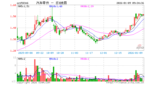1月9日,汽车零件ETF(159306)开盘涨0.13%,报1.508元。汽车零件ETF(159306)重仓股方面,汇川技术开盘跌0.15%,福耀玻璃涨0.57%,三花智控跌0.29%,拓普集团涨0.00%,德赛西威跌0.61%,长盈精密跌0.54%,赛轮轮胎涨0.06%,银轮股份跌1.79%,双环传动跌0.35%,华域汽车涨0.05%。
