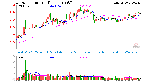 1月9日,新能源主题ETF(516580)开盘跌0.29%,报0.692元。新能源主题ETF(516580)重仓股方面,宁德时代开盘跌0.01%,阳光电源跌0.92%,亿纬锂能涨0.00%,隆基绿能跌0.85%,华友钴业跌1.48%,特变电工跌0.08%,中国核电涨0.00%,赣锋锂业跌0.80%,先导智能跌0.02%,三峡能源涨0.00%。