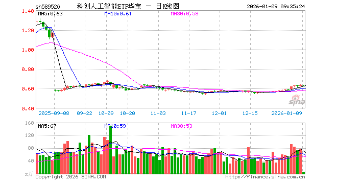 科创人工智能ETF华宝(589520)业绩比较基准为上证科创板人工智能指数收益率,管理人为华宝基金管理有限公司,基金经理为丰晨成、曹旭辰,成立(2025-03-05)以来回报为27.07%,近一个月回报为9.59%。