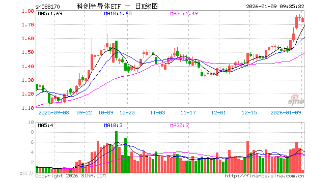1月9日,科创半导体ETF(588170)开盘跌1.83%,报1.714元。科创半导体ETF(588170)重仓股方面,中微公司开盘跌3.89%,华海清科跌0.16%,拓荆科技跌1.23%,沪硅产业跌1.90%,安集科技跌1.07%,中科飞测跌0.01%,芯源微跌5.06%,盛美上海跌1.28%,华峰测控跌1.13%,天岳先进跌0.04%。