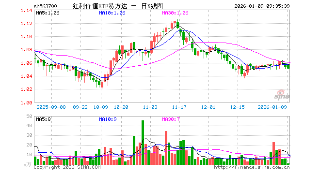 1月9日,红利价值ETF易方达(563700)开盘涨0.28%,报1.056元。红利价值ETF易方达(563700)重仓股方面,中远海控开盘涨0.07%,潞安环能跌2.42%,中粮糖业涨0.00%,南钢股份涨4.22%,山西焦煤跌1.54%,兖矿能源跌0.98%,成都银行涨0.00%,南京银行跌0.09%,大秦铁路跌0.19%,兴业银行涨0.29%。