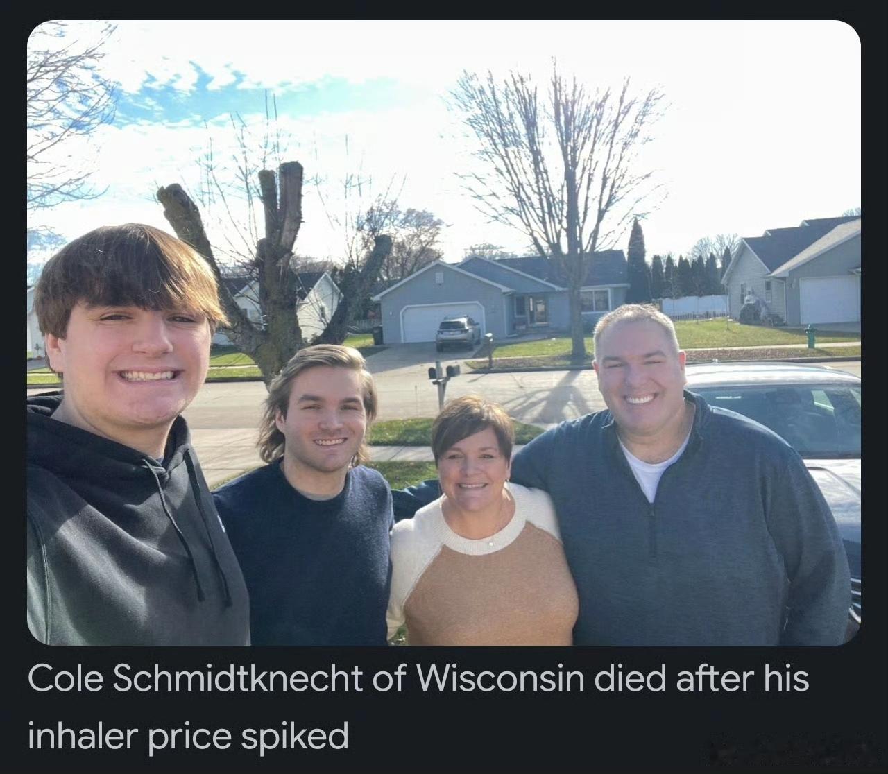 又长见识了。原来美国医疗保险公司、药厂和药房之间,还有一个中间商,叫PBM。它想把哪种药踢出保险覆盖范围,就踢哪种药。连病人从小长期服用的慢性药——治疗哮喘的吸入器也被踢出保险榜单。哮喘病人不得不全款购买,需花539.19美元。 病人不得不在买药和房租之间进行选择。选择租房,不用药物,人昏过去了。如果选择药物,没有住处,就会失去工作或没有工作,没收入了,直接跌入斩杀线。 这种吸入器,中文名叫舒利迭,国内价格200元-300元,(网上买的300元,没用医保),可以用200天,平均每天1元多,价格还能接受。