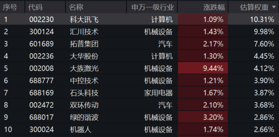 [机器人ETF基金(159213)标的指数前十大成分股]
