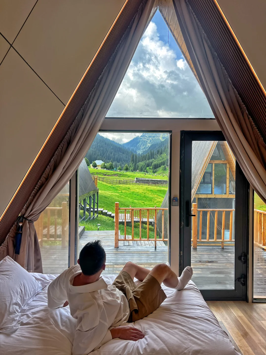 💕没想到这一次伊犁之行最大的惊喜 🌞就是在唐布拉的草原腹地 🎈蓝天白云、草原🏔️雪山、森林🌲牛羊骏马 漫山遍野盛开的小黄花🌼 还有小木屋🏡 这一切的一切仿佛就像是童话般的世界!💕 😄😄😄 特别是当你经历了两个雨天☔️之后, ☀️第二天早上你从小木屋中醒来 看到☁️云雾在山间散开 阳光把草原上照亮花朵🌸 ⛰️远处的雪山巍峨耸立 🐂牛儿在悠哉悠哉地吃青草 哇哦,这才是美丽的伊犁! 这才是,旅行的意义! 📍 欣驿唐布拉心空营地