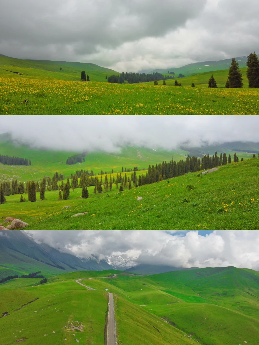 这里是唐布拉百里画廊的【布隆沟】 一个小众、人少、精美的免费景点! 五月的时候,有雪山🏔️、草原上🌼鲜花盛开 真的不比任何收费的景点差! 📍导航【布隆温泉】即可 进入温泉之前,📱手机还是有信号的!⚠️ 🚘从省道315转进去大约20公里。一路都是美景! 1️⃣基本全程都是水泥路,除了最后3-4公里碎石路到布隆温泉。 2️⃣轿车可通行的,只是山路窄,会车时注意慢一点即可。 3️⃣这里基本没🈶商业化,需要自己带食物饮用水。 4️⃣游玩时间:如果单纯拍照打卡,大约需要1.5小时 5️⃣如果要徒步去野温泉,那就要大半天时间 ‼️山谷天气变化大,特别是下雨天切忌不要进山徒步去找野温泉!出来玩,安全第一! 📷最佳拍照点🎉 1️⃣开车到达山顶公路,这一段路风景不错,远处可以看到草原、雪山、森林、河谷。这一段路大约有几公里,可以找合适停车的地方拍照游玩。 2️⃣下山往温泉这一段路也挺好看的,只是这里停车位比较少,快下到山谷的左边,有个木头栅栏门,这里有个小的停车位,可以靠边停车,拍河流山谷草原的美景! 3️⃣继续往前开,在河流边有较宽阔的停车位,可以拍河流、森林和雪山。 4️⃣再往前就是碎石路,前往布隆温泉酒店。 📣独库公路开通之后,可以乔尔玛下来进入唐布拉百里画廊,再进入布隆沟游玩!