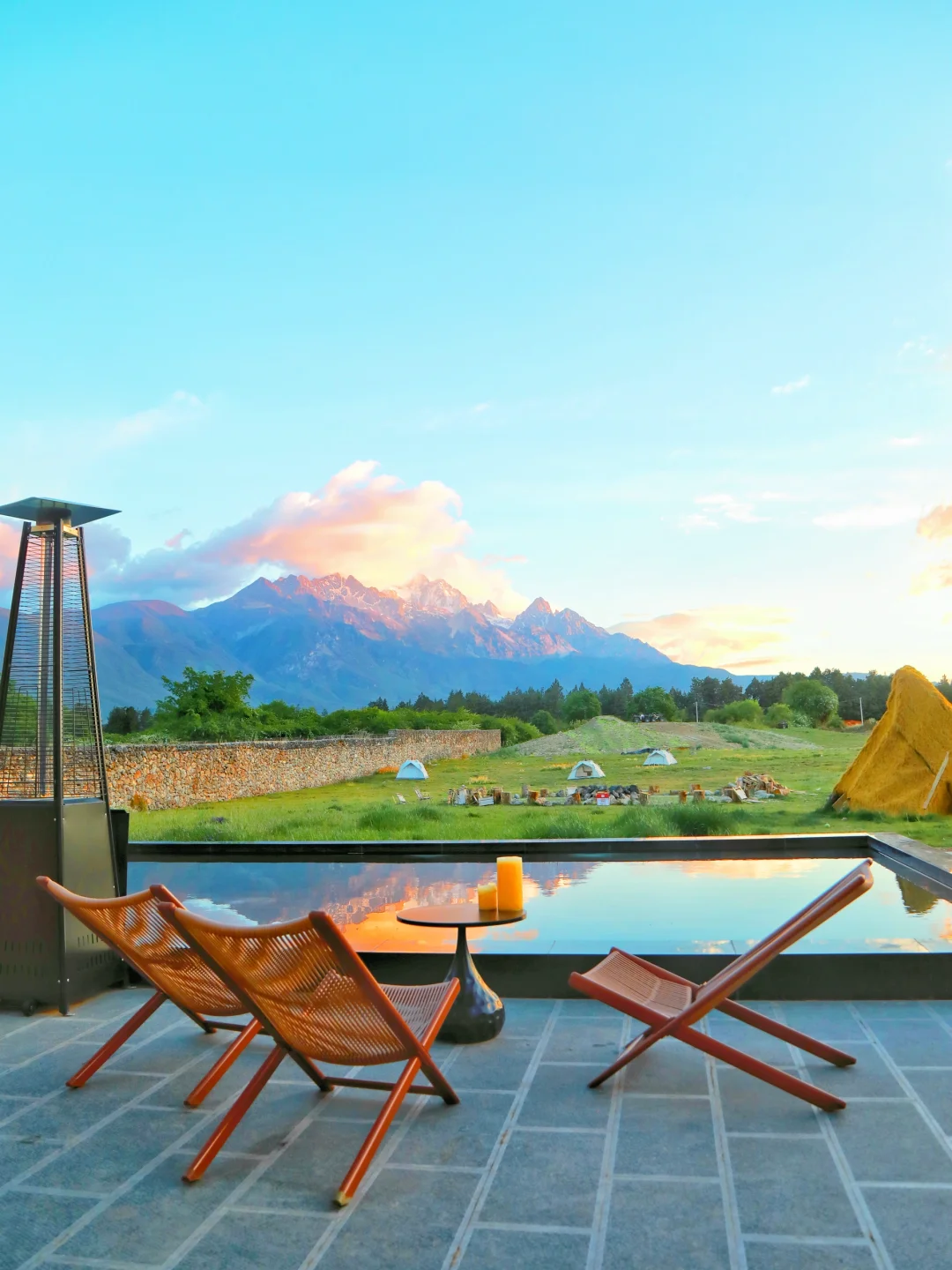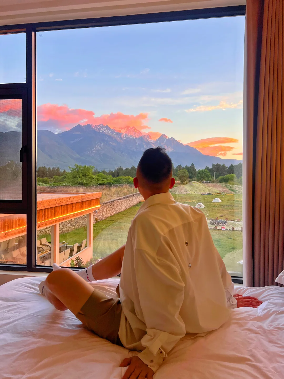 🌞当晨雾漫过玉龙十三峰时 🏔️我在2400米的白沙古镇醒来 ⛱️只需轻轻拉开窗帘 📷便独享了这天地间最盛大的开场 👍玉龙雪山日照金山 ▫️游玩体验|住进艺术美学秘境 🔸玉龙雪山尽在眼前 🔸就在白沙古镇附近 🔸免费赠送啤酒🍻饮料和小零食 🔸 管家会提前告知日照金山的时间 🔸 顶楼必须打卡,有很多拍照机位 📸出片攻略: ✔️提前15分钟准备好,日照金山持续时间大概只有10多分钟。 ✔️建议穿浅色或亮色衣服 ✔️用房间玻璃窗作为画框作为前景拍雪山 ✔️充分利用鲜花、桌椅营造氛围感 ✔️酒店的啤酒饮料,也是很出片的道具 ⚠️后劲太大!! 回家后手机循环播放日照金山的美景照 原来真的会有风景 能让人相信「人间值得」💫