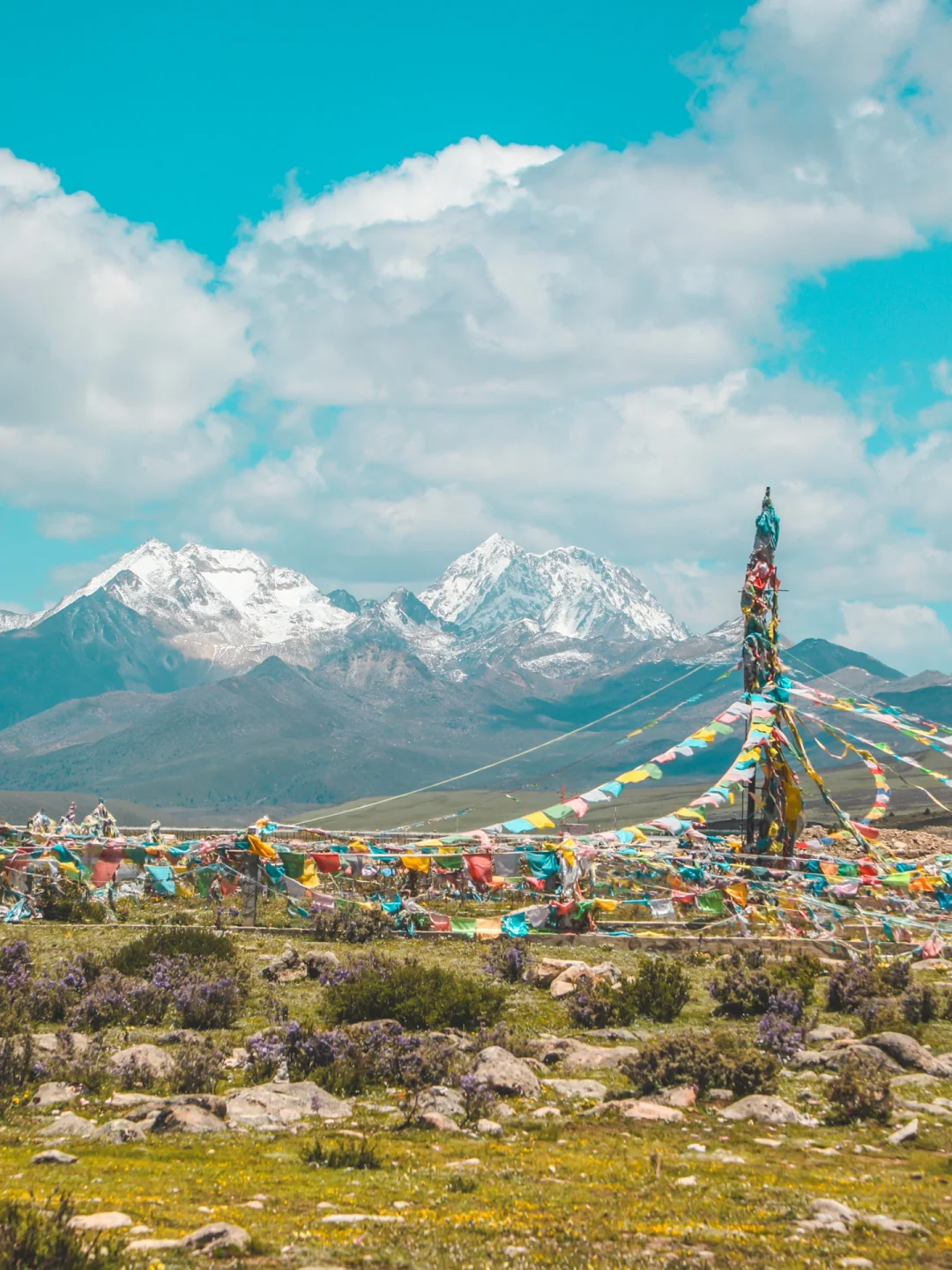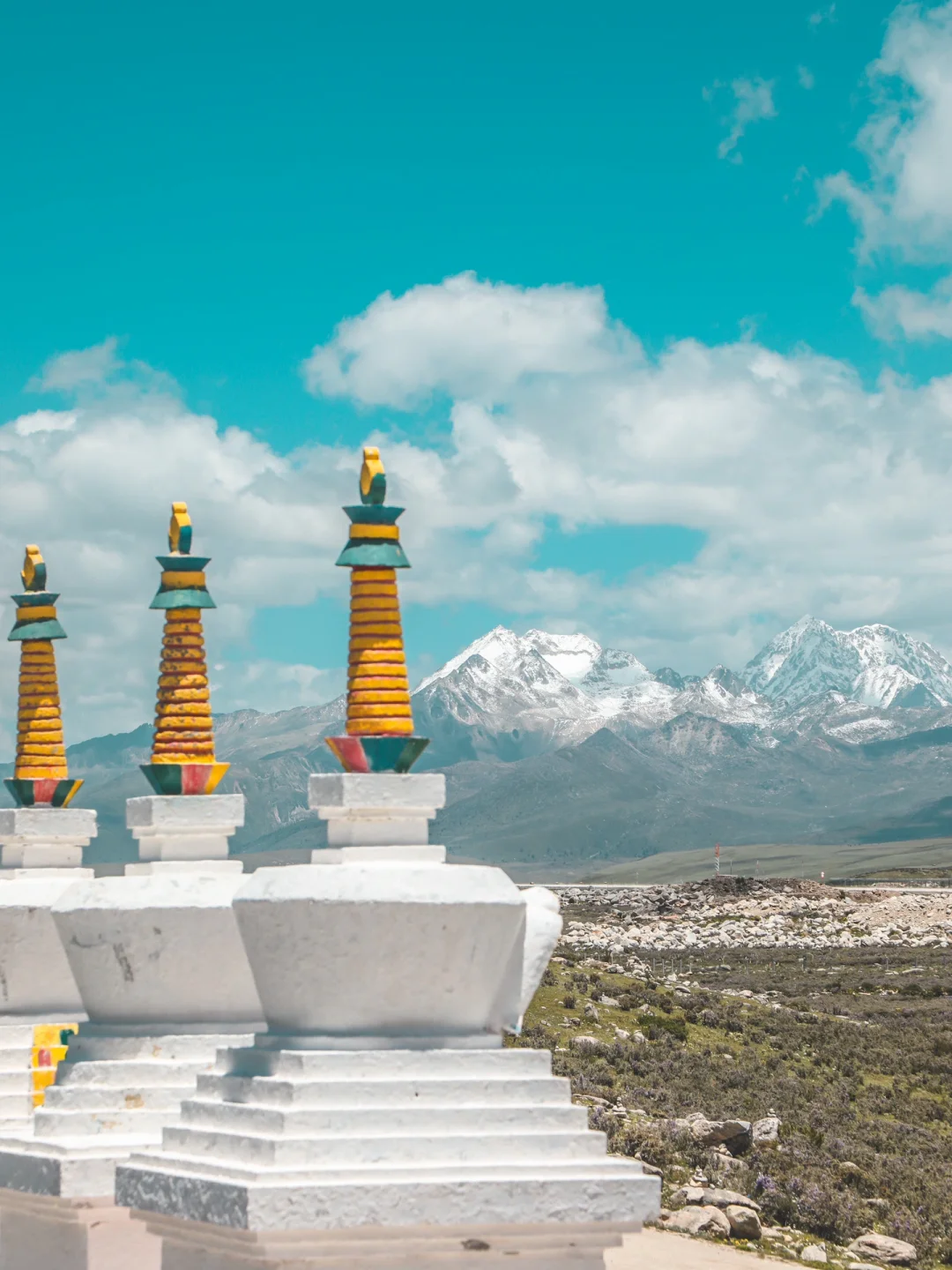 2⃣️一定要开上有一排白塔那里,这里拍经幡白塔和雪山很出片。