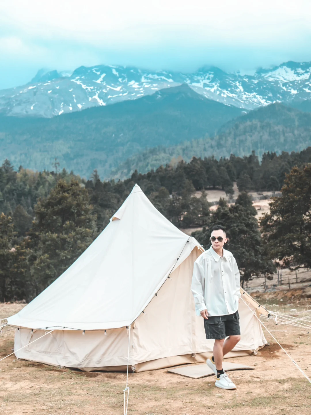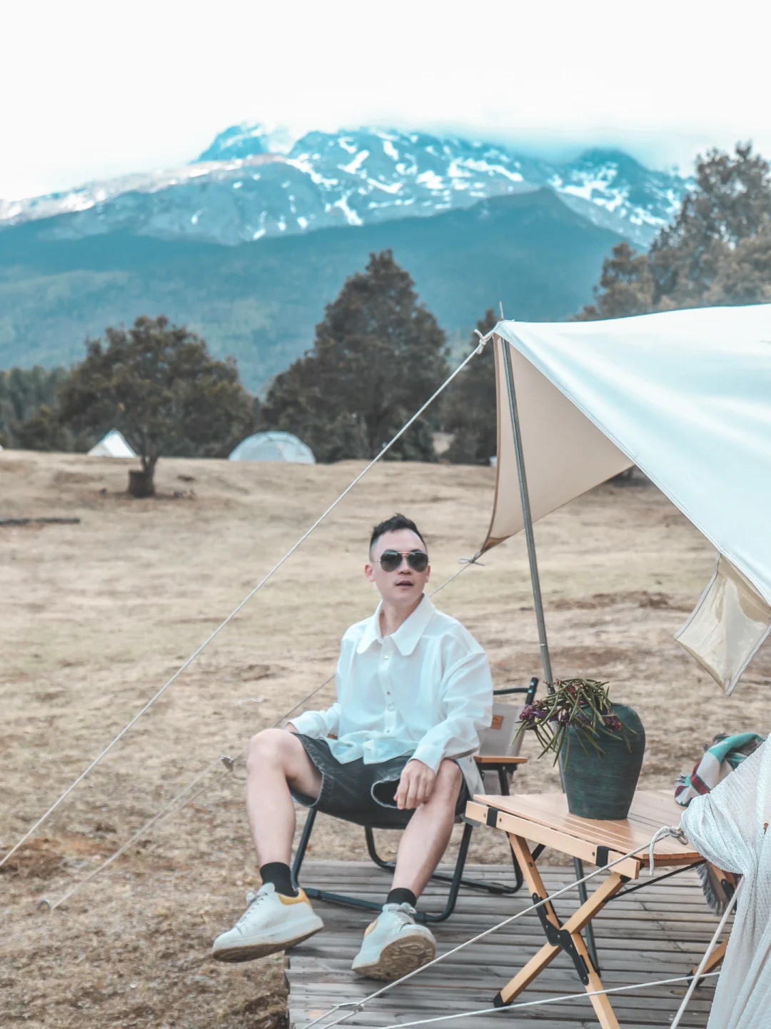 1⃣️营地海拔大约3200左右,抬头就是哈巴雪山🏔️,看雪山的视野很棒!
