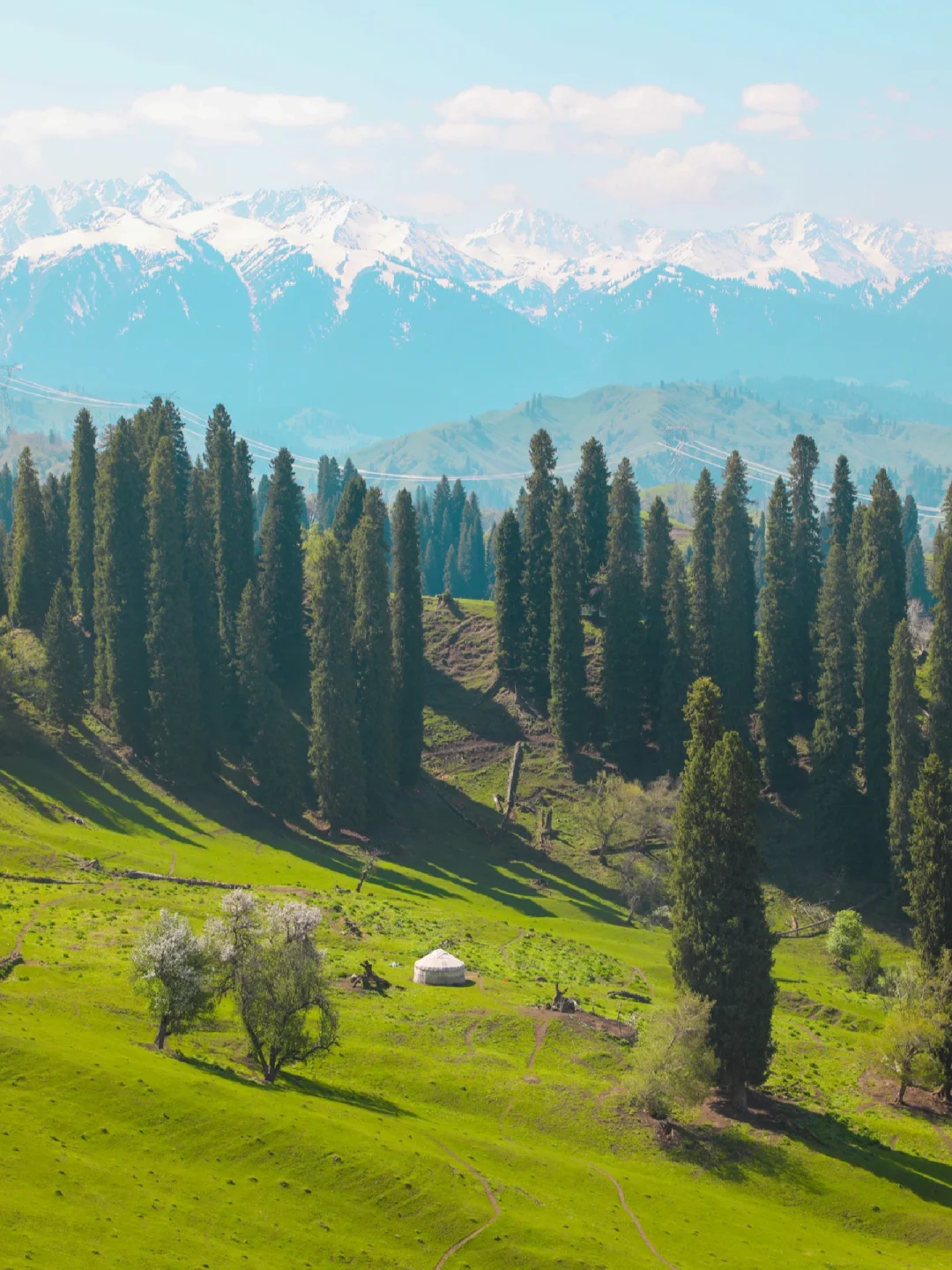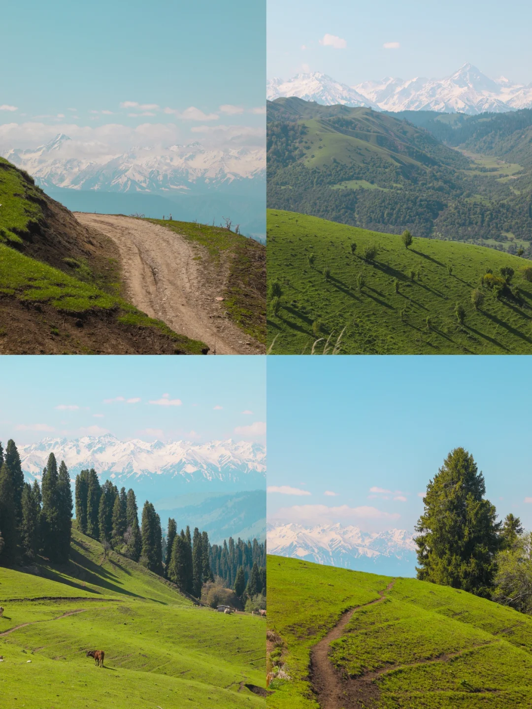 1⃣️建议从库尔德宁景区游玩之后,可以在库尔德宁镇住一晚,然后第二天一早去萨哈野苹果淋游玩,早上光线很好。雪山下一大片苹果林。