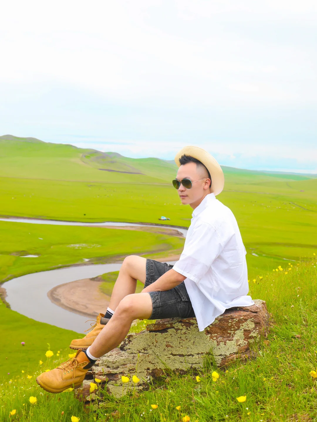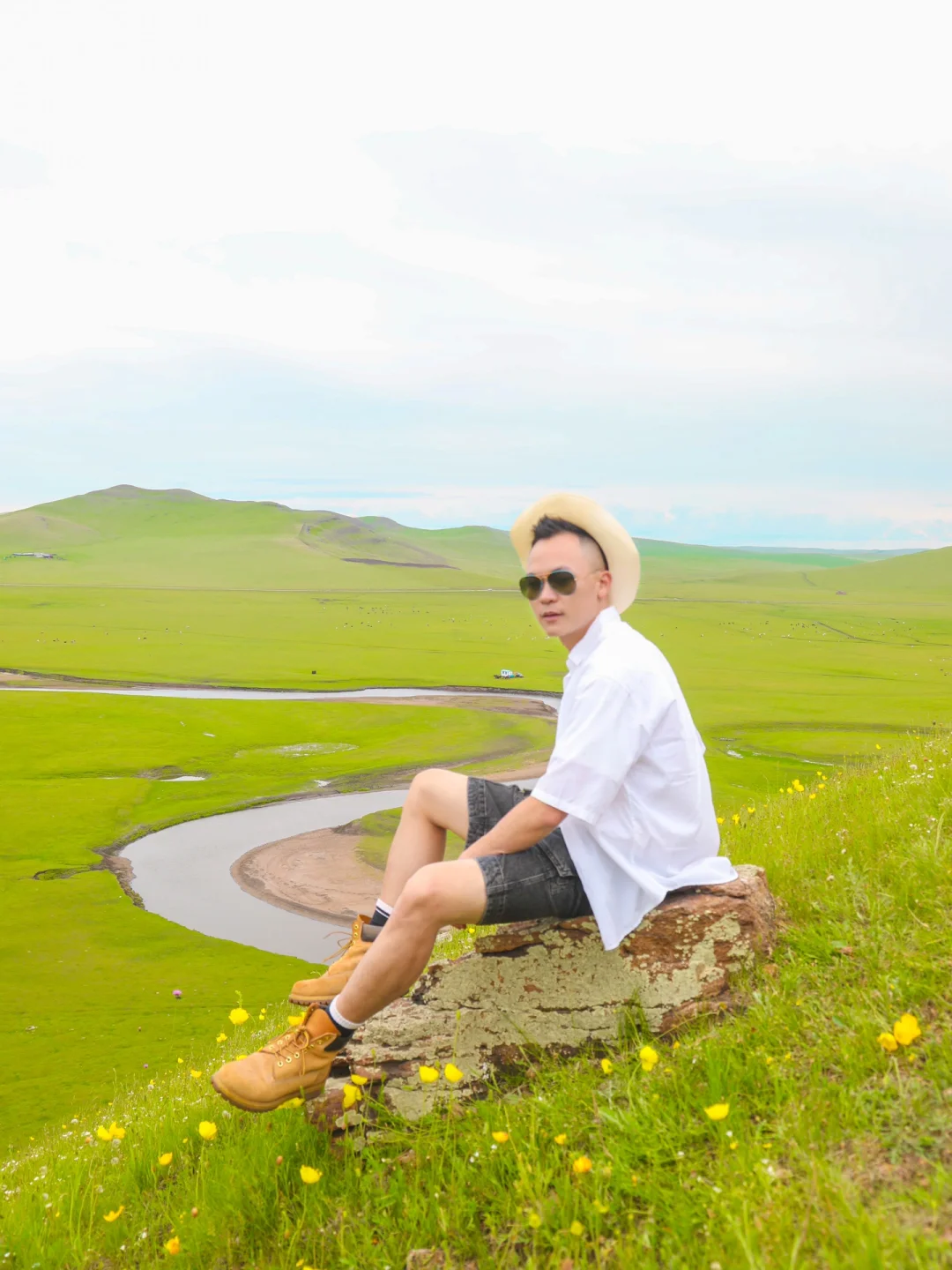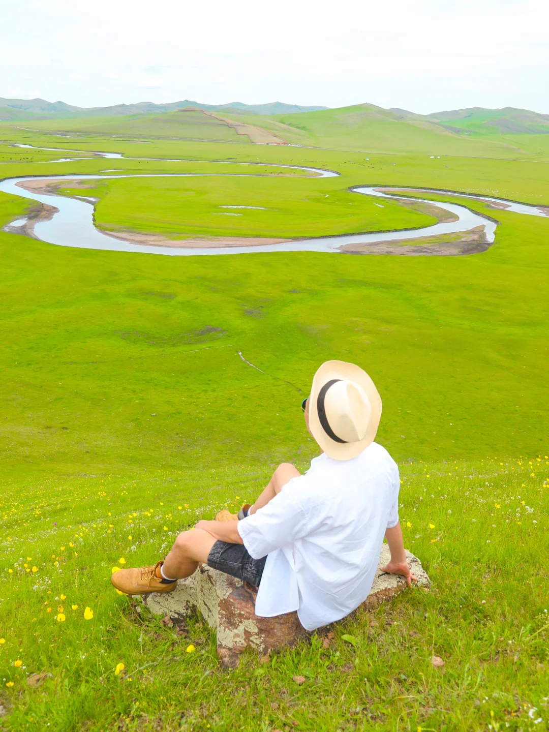 1⃣️🌟🧭可以导航【希勃日敖包】到达这里后,大约500米道路左边有座桥,然后开车开过桥,一直沿着泥土路大约开3-5公里,看到路边有很多车停下的应该就是断崖了。站在断崖处,可以从高处👀草原以及弯弯曲曲的河流从草原穿过,还有成群的牛羊,景色很壮观。