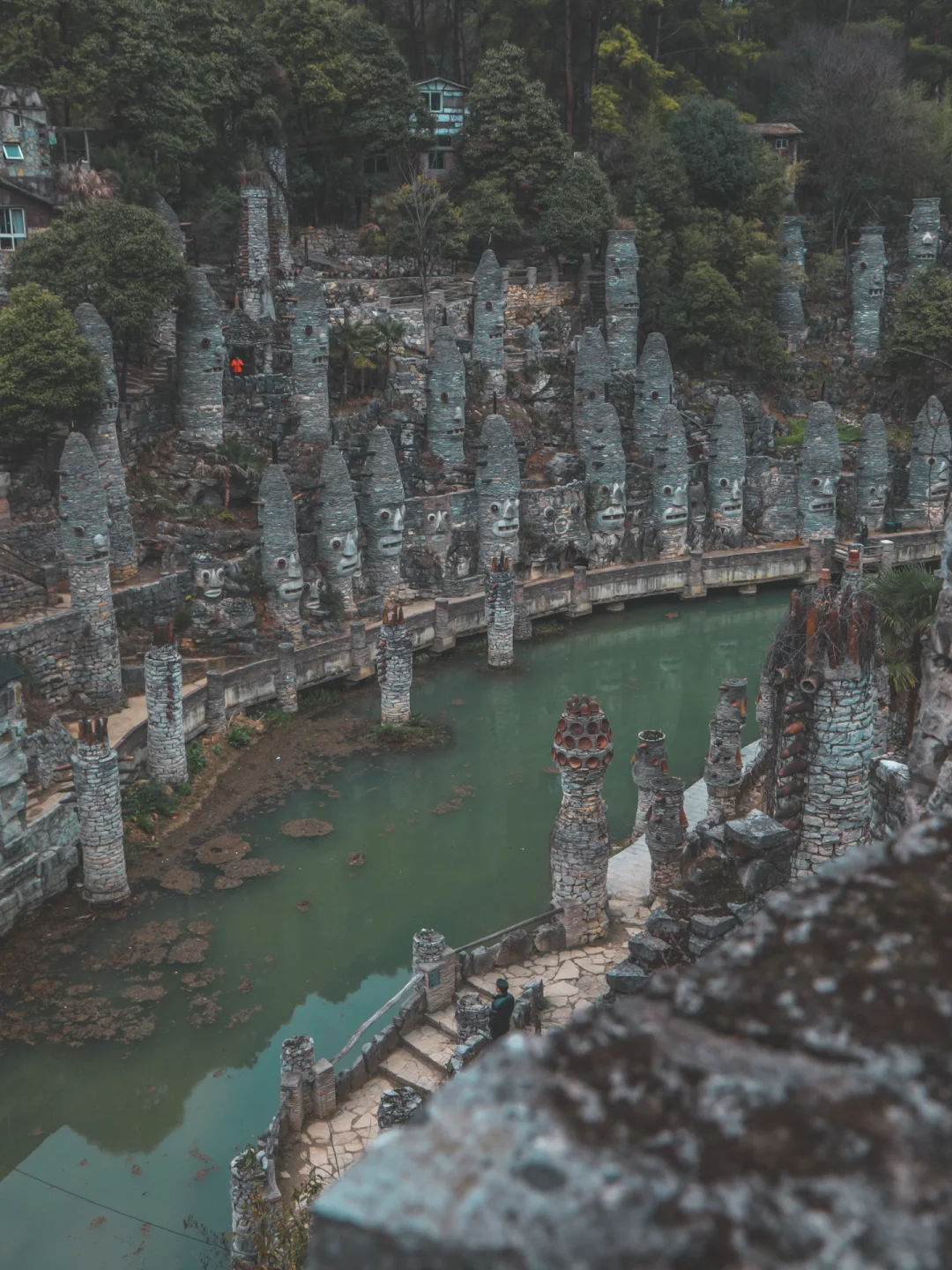4⃣️最壮观的河谷两岸的雕像,建议站在河这边拍对面有楼梯的雕像群。可以拍大景把壮观的景色一起拍进去。
