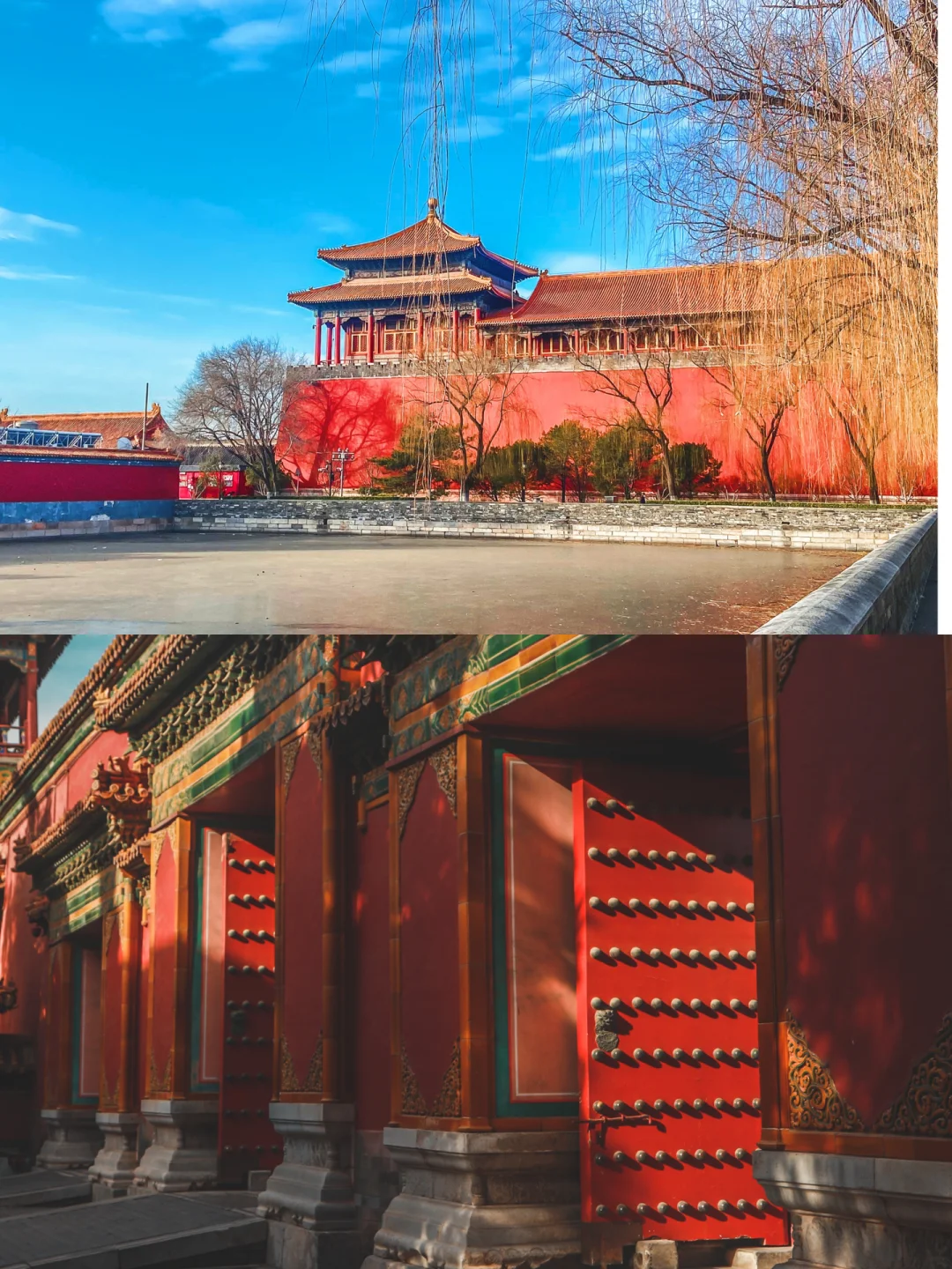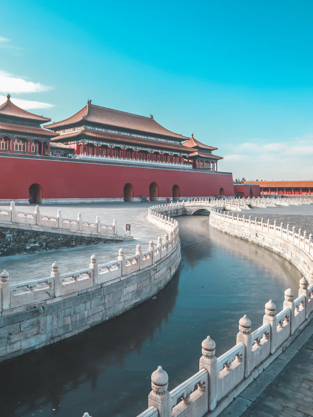 1⃣️进了午门,先不要急着过金水桥,往东边走(进门右手边)这里拍午门以及太和门都是很棒的角度。【应该是东面协和门附近】可以站在金水桥边拍,也可以靠着宫殿栏杆拍。
