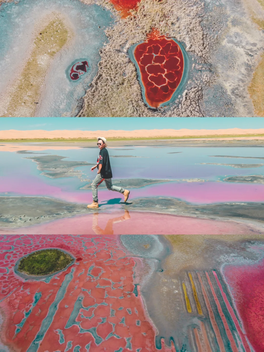 7⃣️内蒙古·阿拉善左旗·五湖穿越。在沙漠腹地看到迷人的落日,穿越沙漠遇见地球心脏,还有粉色的骆驼湖,享受游乐园过山车的同时,欣赏大自然五彩斑斓的湖泊,尖叫声欢呼声不断的神奇之旅。