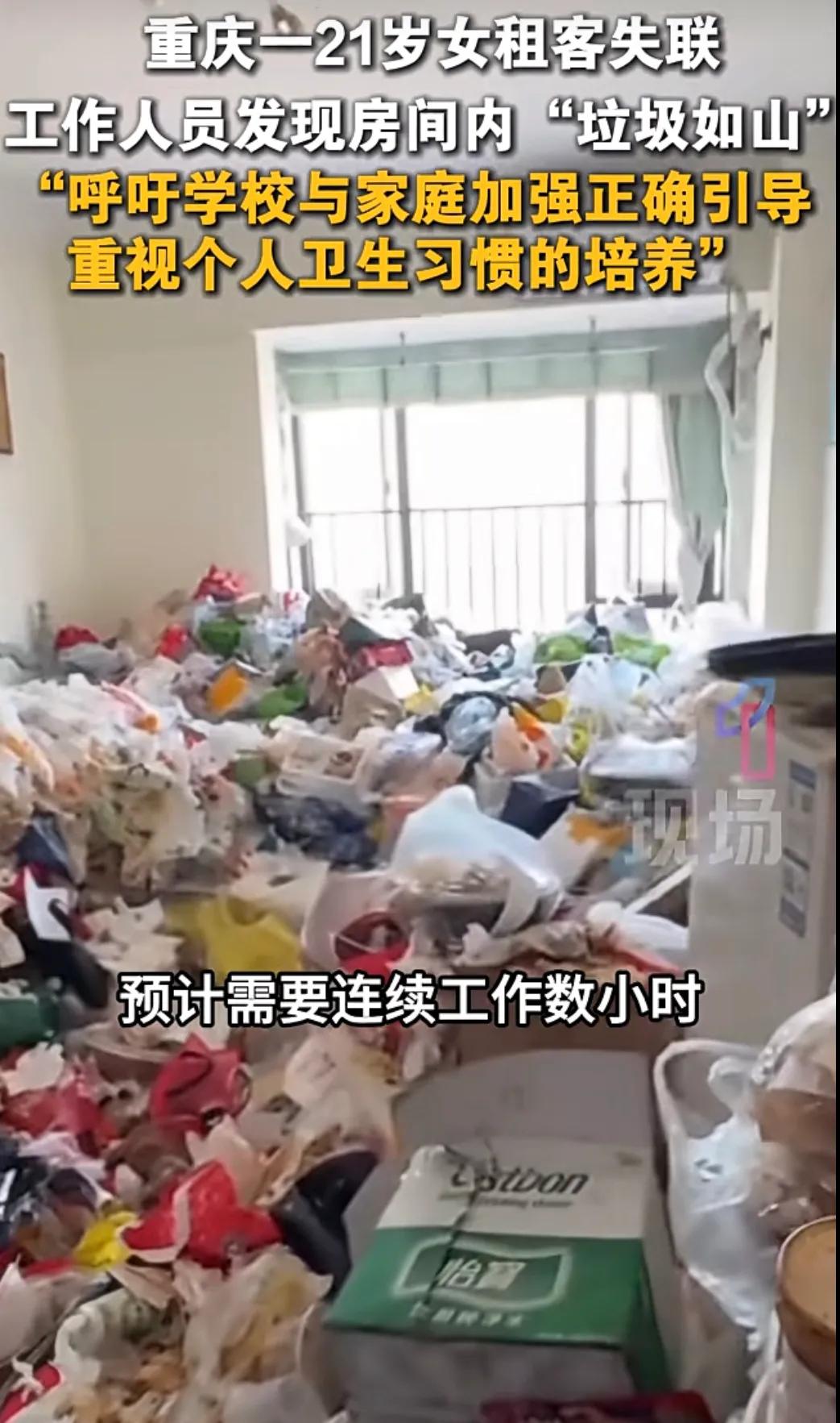 1月8日,重庆,一租房平台工作人员反映,一名2005年出生的女租客在租住一年半后,欠租十多天拉黑工作人员后失联。平台报警并开门后发现,屋内垃圾堆积成山,场面触目惊心。工作人员表示,押金可能仅够支付垃圾清运费用,房屋内部及家具家电是否损坏需清空后才能检查。 工作人员掀开房门的那一刻,刺鼻的馊味先一步涌了出来,视线所及之处全是堆积的垃圾:发黄的外卖餐盒浸着油污,揉成一团的纸巾和零食袋缠在一起,甚至连床沿边都摞着没扔的饮料瓶。据在场的人说,垃圾几乎占据了房间三分之二的空间,要不是提前知道这是有人居住的出租屋,乍一看还以为是被废弃的垃圾站。谁能想到,住在这里的是个21岁的年轻女孩,刚搬进来时还带着学生的青涩,如今却用这样的方式留下了一地狼藉。 这事在网上传开后,骂声大多落在“女孩太懒”“没教养”上,但扒开表象看,这更像是当代部分年轻人独立生活能力缺失的一个极端缩影。05后这一代,大多是独生子女,从小被父母包揽了所有家务,上学时又被学业压得喘不过气,根本没机会学习怎么打理生活。就像这位女孩,从校园突然踏入社会独自租房,面对柴米油盐和家务琐事,瞬间就陷入了“手足无措”的状态,最后干脆破罐子破摔,任由房间变成垃圾场。 这种“生活能力断层”,其实不是个例。身边不少刚毕业租房的年轻人,要么靠外卖度日,厨房从来没开过火;要么衣服攒到没的穿才洗,房间乱到只能在角落腾出一块睡觉的地方。他们不是不想整洁,而是真的没学过怎么规划生活、怎么动手整理,父母和学校的教育里,似乎总把“学习好”放在第一位,却忽略了“生活好”也是人生的必修课。 更让人揪心的是,女孩选择用拉黑、失联的方式逃避问题,这背后是责任意识的缺位。欠租可以沟通,房间脏乱可以整改,可她却用最幼稚的方式推开所有解决问题的可能,这比垃圾堆积的场面更让人觉得可惜。独立生活从来不是只靠年龄达标,而是要学会对自己的选择负责,对生活里的琐事负责。 这起事件也该让家长反思,自己全把家务包揽了,让孩子把精力全放在学习上,是否是最好的选择? 各位读者你们怎么看?欢迎在评论区讨论。