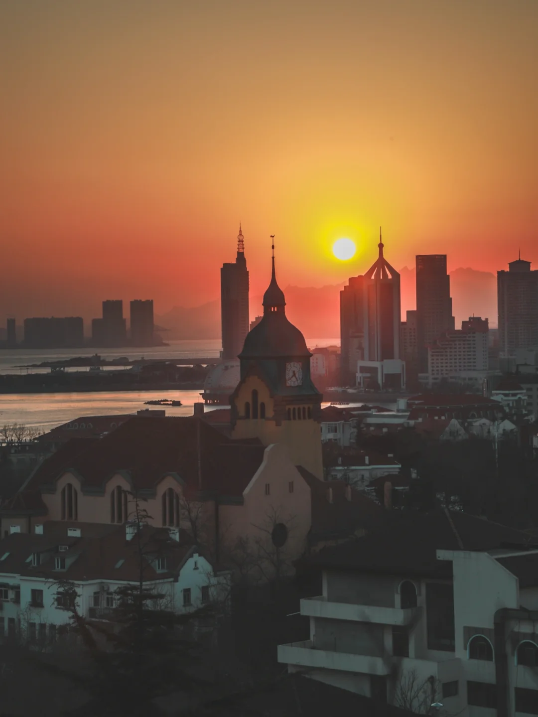 2⃣️必须去信号山看一场落日。冬天的青岛大约5半左右落日,一定要提前看好时间,提前15分钟到达山上观景台。信号山免门票,只要微信在进门处预约门票即可。