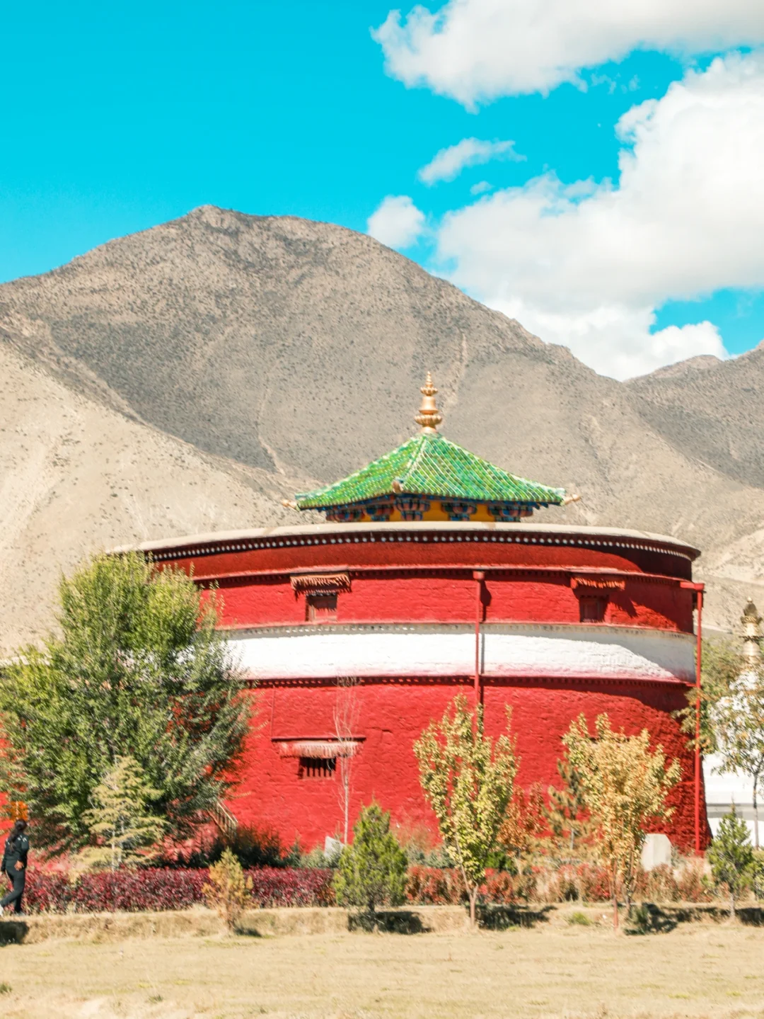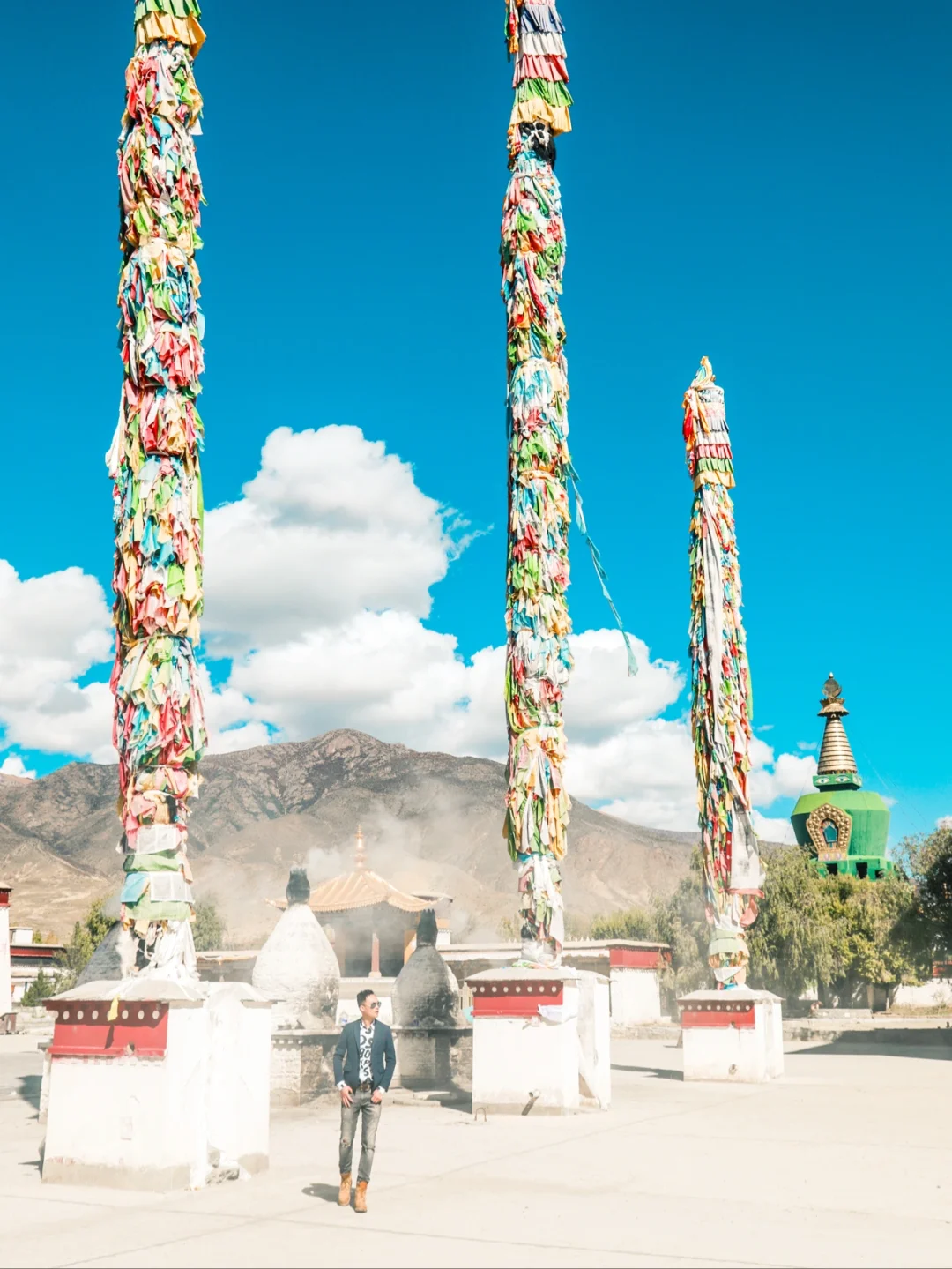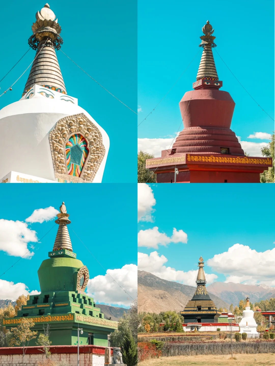 第一次对桑耶寺留下深刻印象 是2019年冬天傍晚时分 桑耶寺上空像凤凰展翅的晚霞 再一次被桑耶寺震撼 是这一次阳光明媚下 蓝蓝的天空 白云朵朵 色彩好看的建筑 还有虔诚的人们 这一切 像极了油画世界里美景! ❤️❤️❤️ 桑耶寺 是西藏第一座具备佛、法、僧三宝的正规寺院 在藏传佛教界拥有崇高的地位 🌟 桑耶寺的建筑布局 是以古印度波罗王朝 在摩揭陀所建的欧丹达菩提寺为蓝本兴建的 从高空看上去 可以看到一座巨大的坛城建筑 🌟 主殿是金大殿又名乌孜大殿 高三层 楼上可观全景 四周建有红、白、绿、黑四塔 四座塔的造型不同 颜色各异 每座塔上 画有佛👀 这样的塔的造型 好像在尼泊尔比较常见 🌟 这里绿植比较多 好像园林景观 特别是蓝天白云下 不同造型的建议映衬着 真的好像油画一般 【游玩体验】❤️ 门票:49元/人 地址:位于山南市扎囊县 🌟距离贡嘎机场约1小时(基本上全程高速) 🌟距离拉萨市区约1小时40分钟(基本全程高速) 🌟可以坐复兴号动车,在扎囊站下车(再打车去) 🌟附近景点:扎囊沙漠、雍布拉康。 🌟游玩时间:建议1-2小时 ❤️ 如果是大晴天的话 这里很好拍照 平时来这里的 大都是本地人 游客不多 拍照点太多了 可根据自己喜好选择不一样的角度 或者漫步在里面 好好欣赏建议之美。 生活本来就很美 我们要善于发现更美的一面 喜欢的朋友 请双击关注 我是广广曾 带给你发现不一样点旅行之美。 ❤️❤️❤️