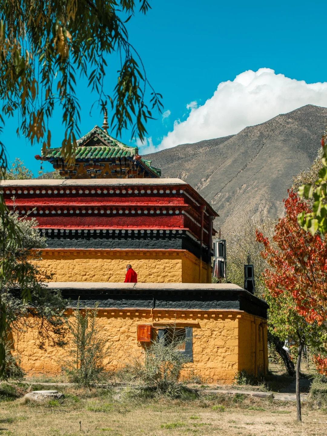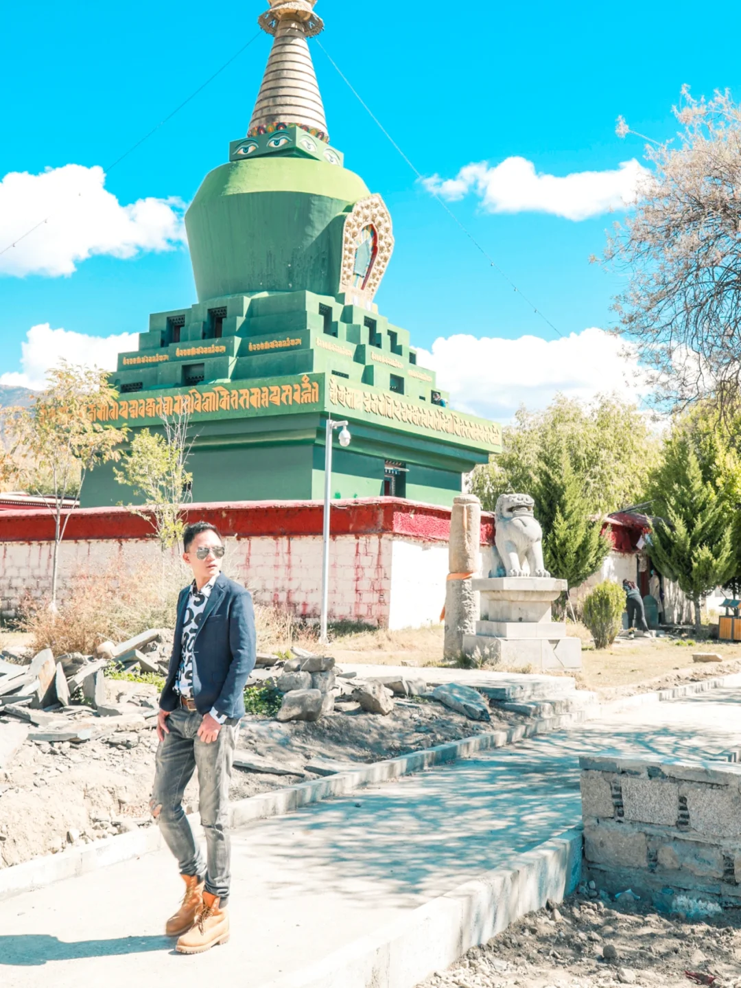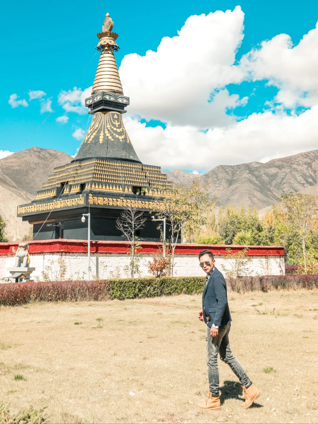 第一次对桑耶寺留下深刻印象 是2019年冬天傍晚时分 桑耶寺上空像凤凰展翅的晚霞 再一次被桑耶寺震撼 是这一次阳光明媚下 蓝蓝的天空 白云朵朵 色彩好看的建筑 还有虔诚的人们 这一切 像极了油画世界里美景! ❤️❤️❤️ 桑耶寺 是西藏第一座具备佛、法、僧三宝的正规寺院 在藏传佛教界拥有崇高的地位 🌟 桑耶寺的建筑布局 是以古印度波罗王朝 在摩揭陀所建的欧丹达菩提寺为蓝本兴建的 从高空看上去 可以看到一座巨大的坛城建筑 🌟 主殿是金大殿又名乌孜大殿 高三层 楼上可观全景 四周建有红、白、绿、黑四塔 四座塔的造型不同 颜色各异 每座塔上 画有佛👀 这样的塔的造型 好像在尼泊尔比较常见 🌟 这里绿植比较多 好像园林景观 特别是蓝天白云下 不同造型的建议映衬着 真的好像油画一般 【游玩体验】❤️ 门票:49元/人 地址:位于山南市扎囊县 🌟距离贡嘎机场约1小时(基本上全程高速) 🌟距离拉萨市区约1小时40分钟(基本全程高速) 🌟可以坐复兴号动车,在扎囊站下车(再打车去) 🌟附近景点:扎囊沙漠、雍布拉康。 🌟游玩时间:建议1-2小时 ❤️ 如果是大晴天的话 这里很好拍照 平时来这里的 大都是本地人 游客不多 拍照点太多了 可根据自己喜好选择不一样的角度 或者漫步在里面 好好欣赏建议之美。 生活本来就很美 我们要善于发现更美的一面 喜欢的朋友 请双击关注 我是广广曾 带给你发现不一样点旅行之美。 ❤️❤️❤️