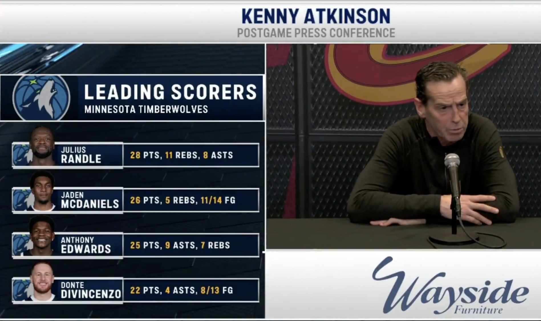 骑士主帅肯尼-阿特金森接受了记者采访,阿特金森表示:“我们坚持收缩内线的策略,我们必须回看录像分析一下,我们的干扰是不是可以做得更好?”