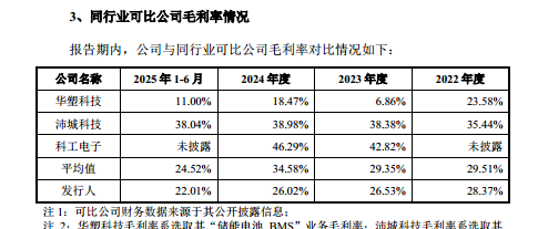 除盈利质量不佳外,高特电子的产品竞争力也在持续下滑。报告期内,高特电子的毛利率分别为28.37%、26.53%、26.02%、22.01%,同行可比公司平均值分别为29.51%、29.35%、34.58%、24.52%,不仅自身呈逐年下滑趋势,且始终低于同行可比公司平均值。