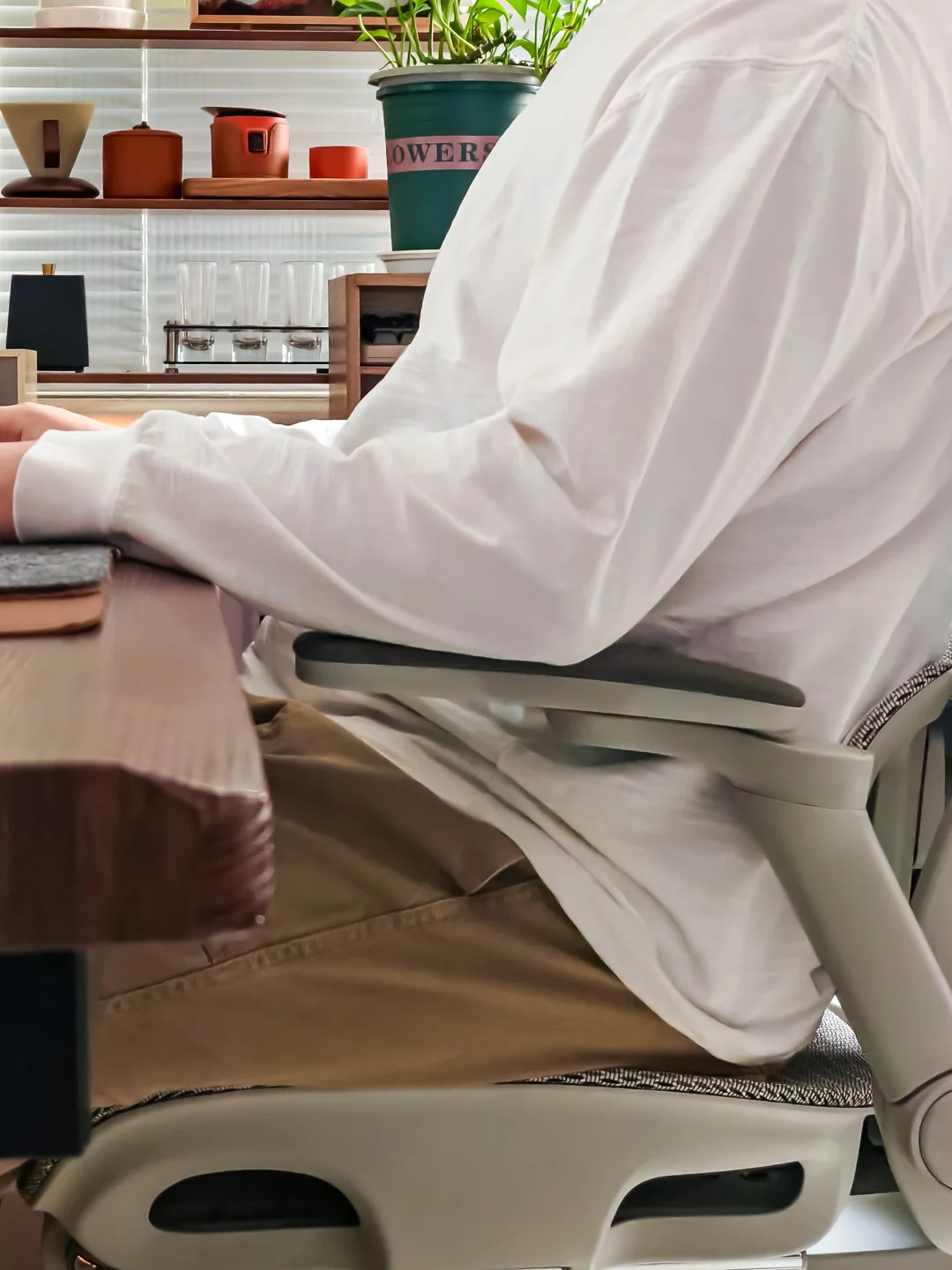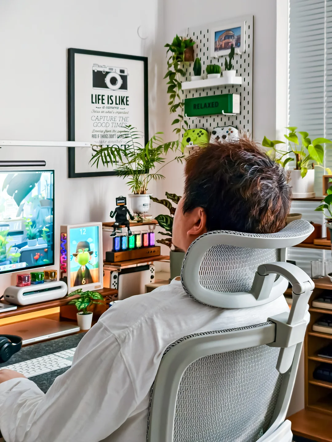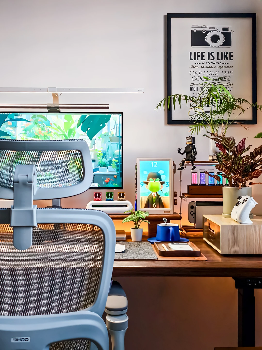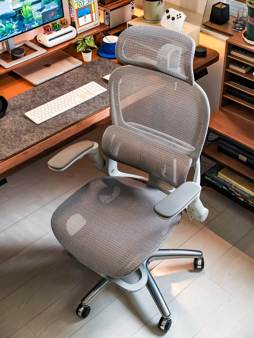 不知从什么时候开始,我的书房成了我一天待得最久的地方,虽然房间不大,可我还是尽量让我的书房更加舒适,毕竟办公、阅读、打游戏刷剧,常常一待就是一整天。作为一名桌搭爱好者,之前总纠结桌面摆件的颜值,直到久坐腰酸到直不起身才发现:一把舒服的椅子,才是桌搭幸福感的核心!毕竟再精致的桌搭,要是坐的不舒服,也会大大折扣! ~ 西昊B300人体工学椅真的精准戳中了我的需求,椅背上那个醒目的红色旋钮,操作起来完全不费力——轻轻拧动就能实现精准的前后调节,平时前倾办公或者游戏的时候,让它前移紧紧贴合腰部曲线,腰部能一直得到稳稳的支撑;这个红色旋钮真的是点睛之笔,让每一种坐姿都能兼顾舒适和支撑!这才是真护腰啊! ~ 腰靠还能上下四档调节,轻轻拨动档位,本人181cm的身高都能精准适配~ 不用费劲儿就能找到贴合自身身形的位置,久坐也能稳稳承托,毫无压力感! ~ 更绝的是前后浮弹追腰和左右3度动态撑腰设计!不管是办公时换坐姿、打游戏时动来动去,腰枕都能自适应贴合腰部曲线,护腰安全感直接拉满~ ~ 6D联动扶手也是惊喜款!上下、前后、内外调节+360度翻转就算了,100度翻折功能真的拯救小户型!不用的时候推进桌子底下,瞬间腾出大片活动空间,椅子推进去完全不占地儿,太实用了。 ~ 坐感方面,密楞波浪特网布的透气性绝了,网孔大、弹力足,夏天久坐也不会闷出汗,亲肤不粘腿,坐上去软乎乎又有支撑,完全不会有塌陷感。而且它能147°后仰,还带脚托!午休时拉出来秒变躺椅,打游戏累了靠一会儿,追剧时瘫着放松,关键后仰时扶手还会联动支撑,手臂不用悬空,摸鱼休息都超舒服。 ~ 最让我满意的是它的颜值适配性!B300设计低调不突兀,不管是复古木质风、极简工业风还是实用学生党桌面,都能无缝融入,完全不破坏桌搭整体美感。 ~ 我的小书房既是高效办公的专属空间,忙完后往这儿一待,又秒变治愈小窝~ 西昊B300太懂小户型的痛了,不占多余空间,却能稳稳撑起舒适感。加班赶工后靠在上面,听首喜欢的歌、眯上十几分钟,软乎乎的包裹感太治愈,舒服到让人忘了疲惫~