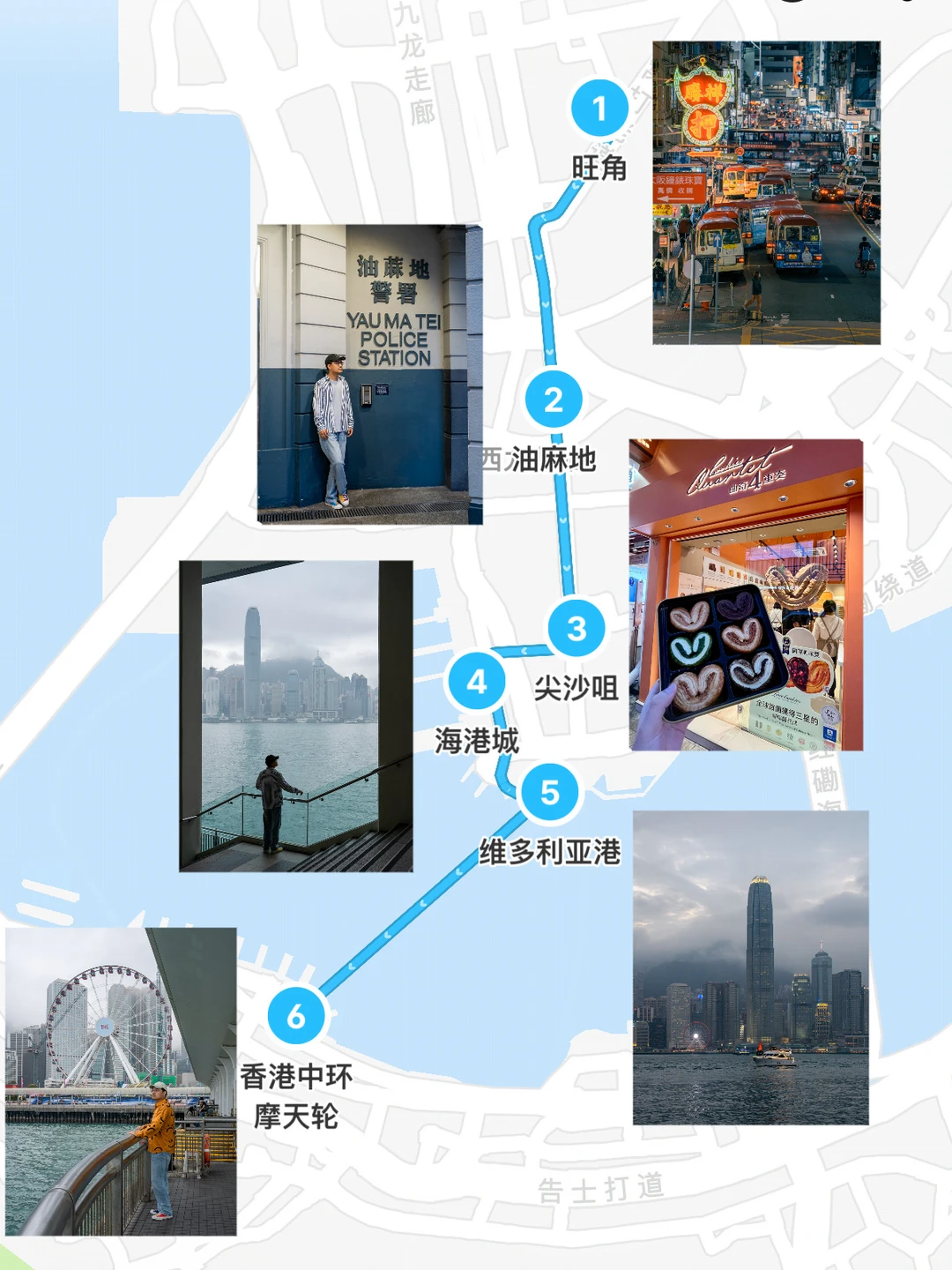 ~ 没有一个城市比香港更适合Citywalk,每一步都踏在中西交融的时空褶皱里 📷镜头仰起,是玻璃幕墙与百年榕树交织的天际线;转角之间,哥特式教堂的尖顶与唐楼的铁花阳台悄然对话 🚃叮叮车轨声里混着英文与粤语的双重节奏,霓虹灯牌映着繁体字与英文字母 🌆这里既是赛博都市,也是烟火故城 J人整理了一份香港2日Citywalk路线、太适合第一次来香港玩的朋友了 ~ 🚶两天一晚CityWalk路线 Day1️⃣港岛 怪兽大厦 ➡️ 健康东街 ➡️ 军器厂街 ➡️ 中环 ➡️ 西营盘 ➡️ 香港大学 ➡️ 坚尼地城 Day2️⃣九龙半岛 旺角 ➡️ 油麻地 ➡️ 尖沙咀 ➡️ 海港城 ➡️ 维多利亚港 ➡️ 摩天轮 ~ 🍀旅行攻略 1️⃣想看城市全景的可以去卢吉道和宝ma山 2️⃣特色美食:港式奶茶&菠萝油、鸡蛋仔、各种中式糖水 3️⃣伴手礼:在尖沙咀买了曲奇四重奏、超喜欢椒盐夏威夷果仁味的蝴蝶酥、咬下一口咔嚓脆响,不愧是香港特色美食、更有有30多种口味可选、很适合作为伴手礼 ~ 📷打卡机位 P1⃣️宝ma山 记得查询详细路线后再前往 P2⃣️卢吉道 可以乘坐缆车到太平山顶后再前往 ~ P4⃣️怪兽大厦 变形金刚的取景地 P5⃣️健康东街 和坚尼地城机位类似、但是游客少很多 P6⃣️军器厂街 轩尼诗道与军器厂街交叉处天桥上拍摄 P7⃣️中环A口出、往麦当劳方向上天桥 P8⃣️西营B2出口 P9⃣️香港大学 B1口 落日飞车 P1⃣️0⃣️坚尼地城 C口出上篮球场 ~ P1⃣️3⃣️旺角 B3口天桥上 P1⃣️4⃣️油麻地警署 C口出步行5分钟 P1⃣️6⃣️海港城 就在入口处的楼梯上 P1⃣️7⃣️维多利亚港 星光大道上还有麦兜铜像 P1⃣️8⃣️摩天轮 从维港坐天星小轮到中环的摩天轮、走到9号码头