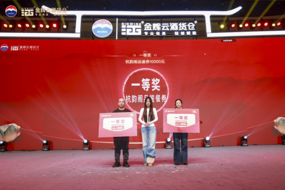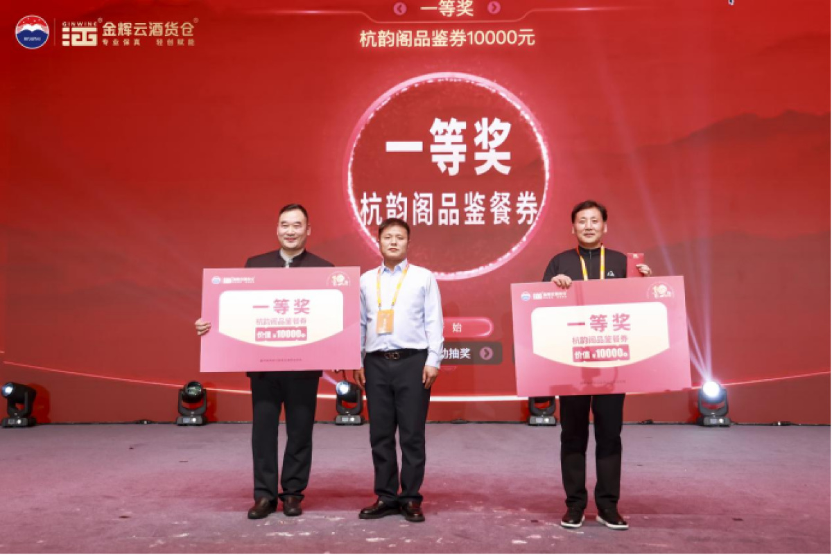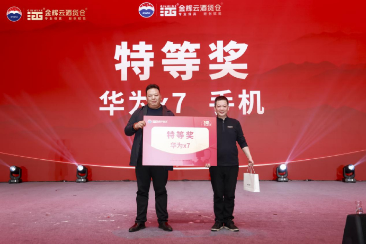 为回馈现场嘉宾,晚会设置了多轮重磅抽奖环节。奖品包括华为X7手机、价值10000元的杭韵阁高端品鉴券、价值2199元的忆江南套票,华祥苑精品茶叶、名仁苏打水等,每一份奖品都不仅是一件礼物,更是金辉酒业对合作伙伴长久以来支持的一份厚重谢意与美好祝愿。