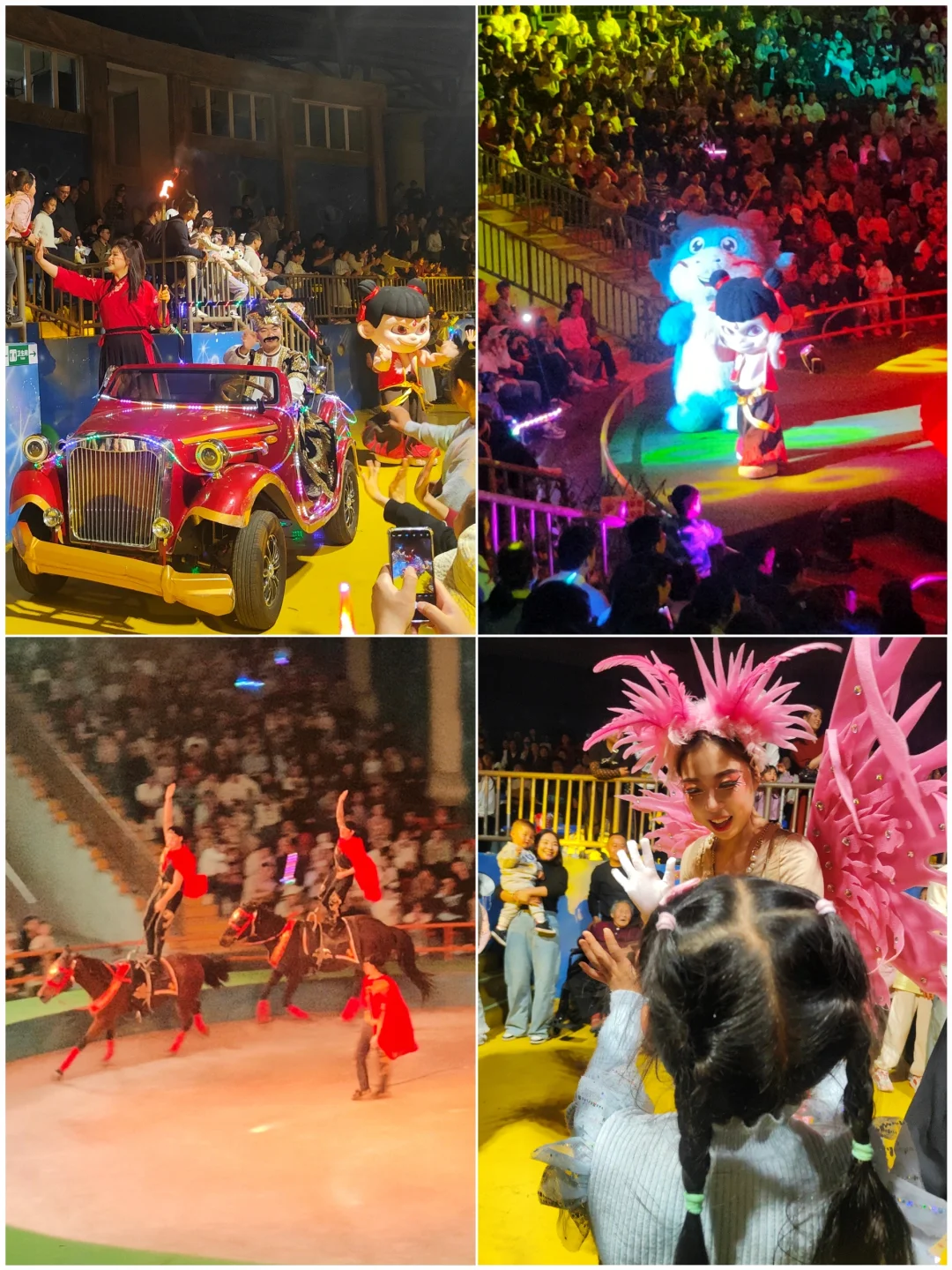 ⭐️大马戏表演:包含动物表演、魔术、杂技、骑马、花车巡游、哪吒战敖丙等,每天有几场,小朋友敲喜欢。