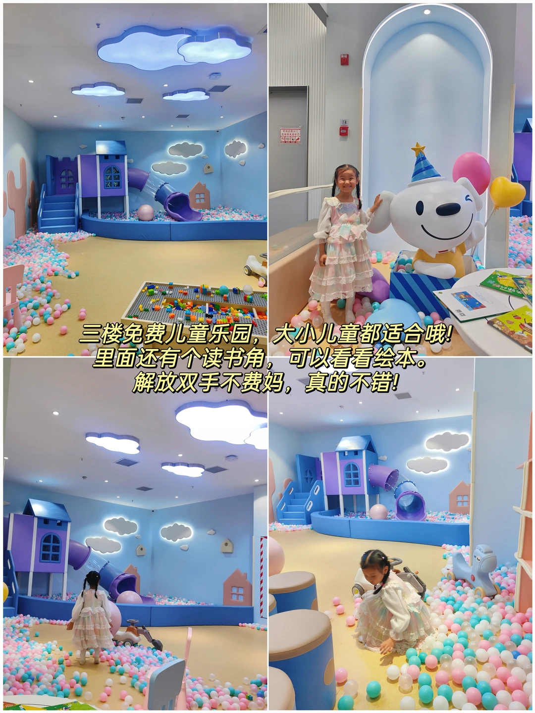 💯三楼还有个免费🆓儿童乐园,里面有滑梯、海洋球、积木、小马等,大小儿童都适合哦!里面还有个读书角,可以看看绘本。这里免费溜娃,释放能量,解放双手不费妈❤️简直是溜娃天堂有木有?