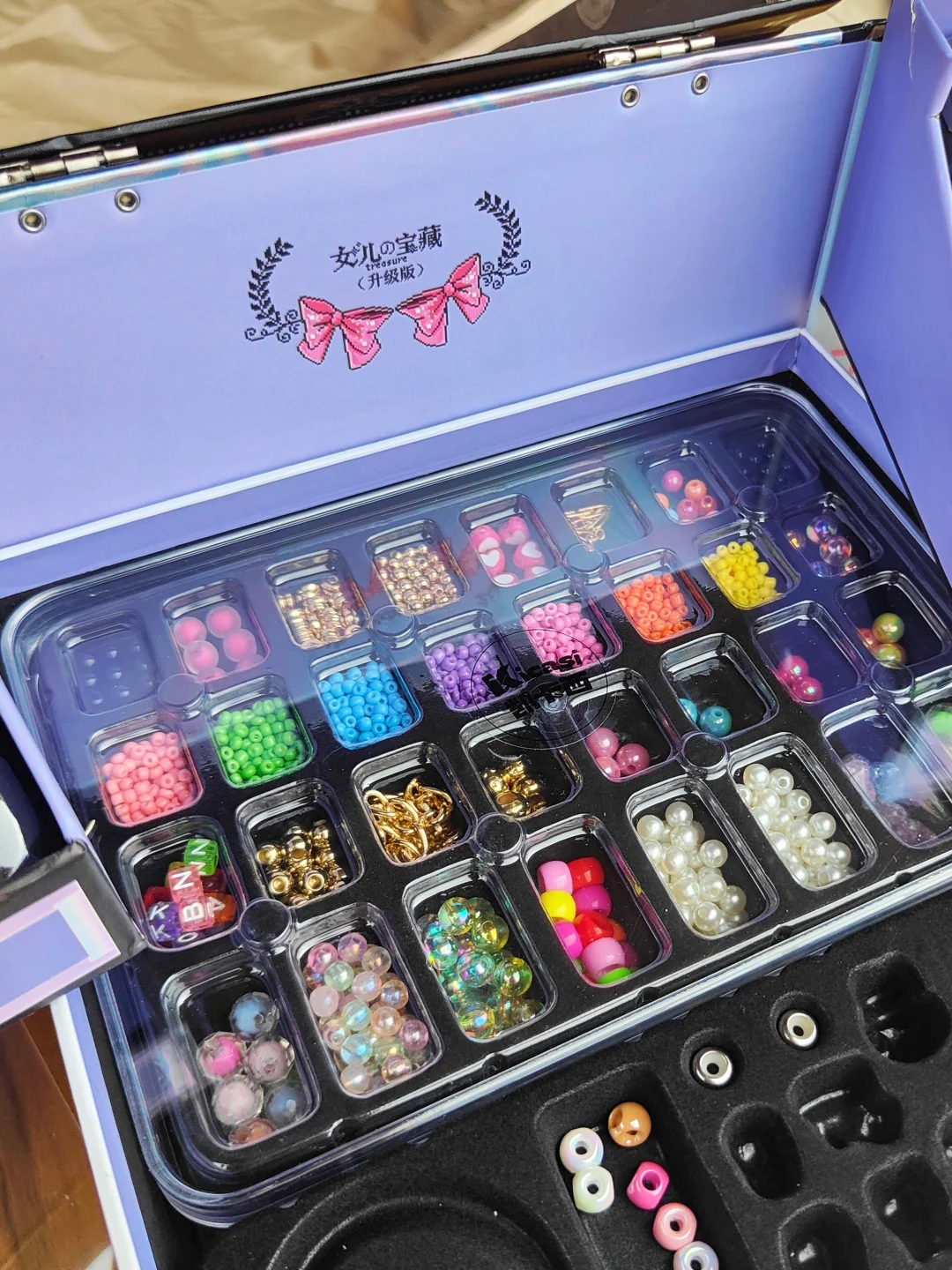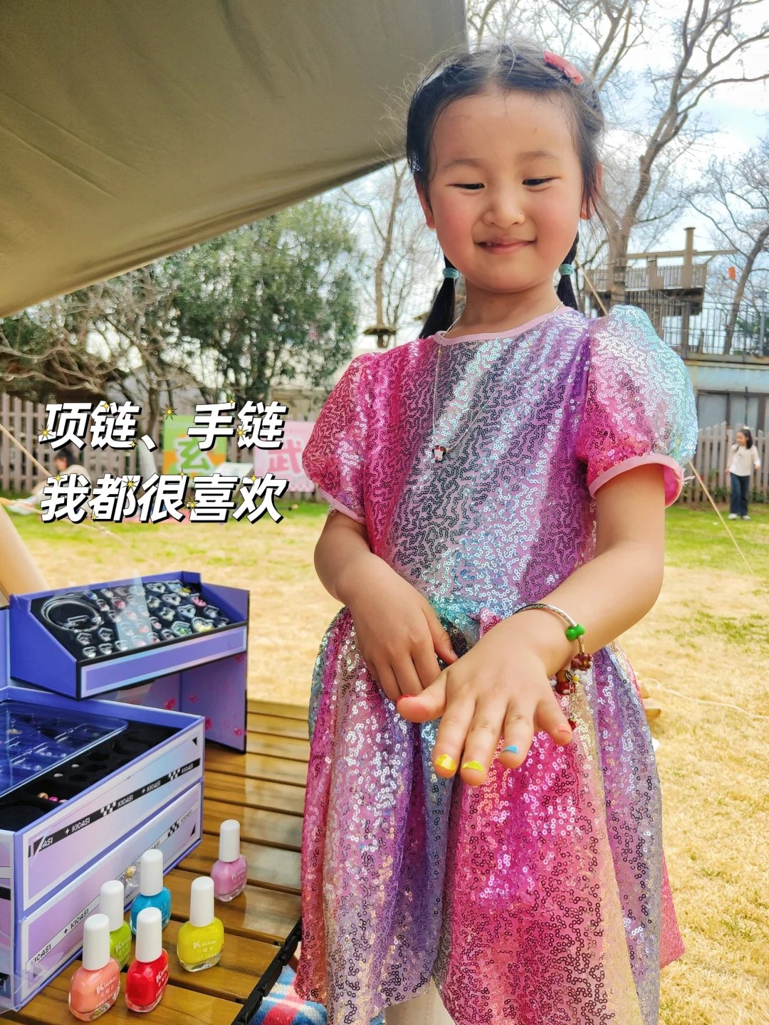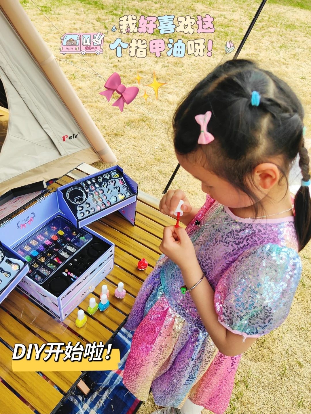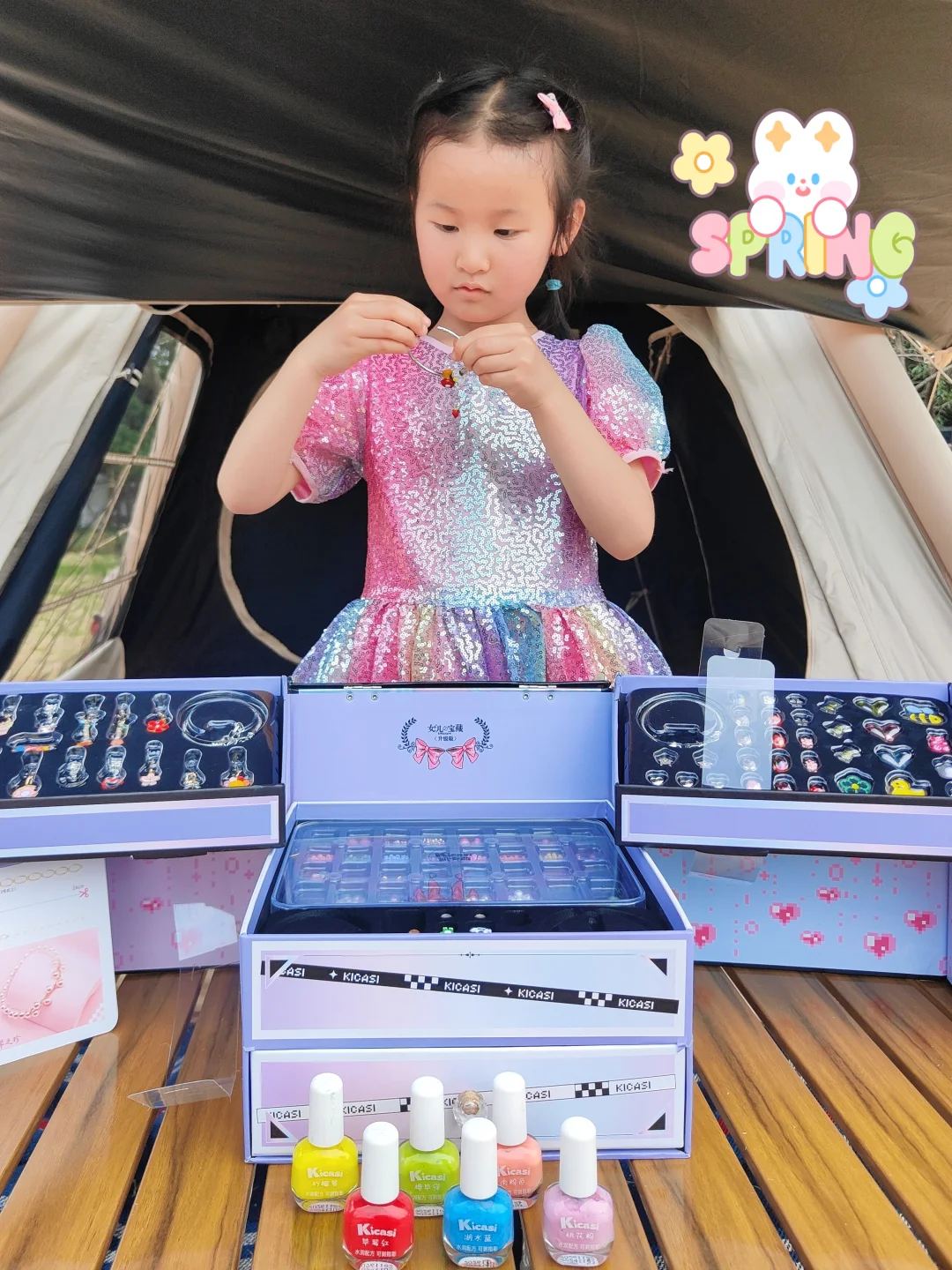 ⭐️1200+ DIY配件,随意搭配手链、项链,关键都敲精致,还有卡片教程,刚打开包装,小丸子已经迫不及待上手了。还有小朋友专属的小金盾认证水性指甲油,涂了之后整个春天都在小手上啦!