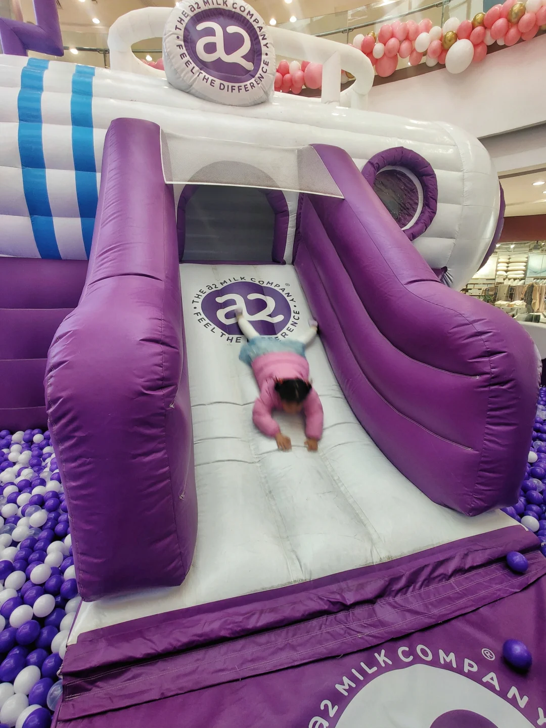 晚上吃完饭带娃在建邺万达溜达,🎈一进门就是a2奶粉的快闪店。