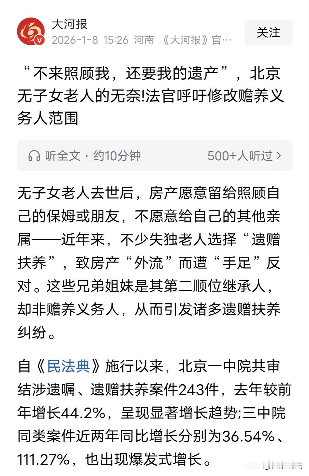 北京,女子患有精神疾病,她的姐姐们拒绝照顾她,她父亲临终前让保姆留下照顾她,无奈,保姆带着女子回了老家,照顾20多年,谁料,女子的外甥到法院,申请要做女子的监护人,女子怀疑他另有所图,拒绝道:我神智清醒,不需要!我只相信保姆。女子去世后,将房子遗赠给保姆的孙子,不料,女子的几位姐姐跳出来,要继承妹妹遗产,并质疑遗嘱是否真实有效?法院作出公正判决。 据大河报1月8日报道,老人明明有亲姐姐,为啥将遗产留给了“外人”? 王红英患有精神疾病,生活上需要人照顾,她的工作单位为了她,曾找过她的亲姐姐们商量,该怎么照顾王红英比较合适? 不曾想,姐姐们唯恐避之不及,各自找理由推脱了,都拒绝照顾王红英。 有时候别人靠不住,最靠得住的还是父母,王红英是家里的小女儿,她的老父亲临终前拜托保姆李慧留下来,希望她能照顾小女儿,这样自己也放心了。 李慧郑重地答应了。 老父亲撒手人寰后,王红英唯一的依靠就是保姆李慧了。 出于现实考虑,李慧决定带王红英一起回了老家,继续照顾她。 李慧为人善良,对王红英的照顾简直无微不至,从生活的饮食起居到看病吃药,她都尽心尽力,不似亲人,胜似亲人。 而李慧这一照顾就照顾了20多年。 多年后,意外来了,王红英的外甥居然跑到法院申请要争取做她的法定监护人。 王红英很惊讶怀疑外甥不是真的想照顾自己,可能奔着自己的财产来的,因为当初亲姐姐都不愿意照顾自己,现在外甥突然示好,她有些担心…… 于是,王红英给单位写了一封信:“我现在神智清醒,力所能及的事能做,不需要监护人。” 而且,王红英还特意把法院给她的答复也引用上了“用谁来照顾我,我有选择权。” 王红英还说:“我早就和保姆李慧姐妹相称了,冬天我手脚怕冷,李姐都放在心上,一到秋天,她就早早备好厚袜子,暖水袋。 我耳背,李姐凑到我跟前给我读报,陪我唠嗑。 我有时候情绪不好,李姐就带我出去嗮太阳,说一些有趣的事儿,一直说到我高兴。 而且,李姐每年都带我回北京复查病情,她还会给我带好常吃的药,一路上都是扶着我。” 王红英表示她早就把李慧当做亲人了,生活上依赖她,甚至,把她当做自己的精神支柱了。 王红英早就看透了亲姐姐们的嘴脸,知道指望不上,而李慧才是那个对自己真心好的人。 所以,王红英生前在北京一老年服务中心写下一份自书遗嘱。 内容大意为:王红英去世后,将和保姆李慧合买的房子属于自己的份额,留给李慧的孙子。 王红英去世后,房子遗赠给了保姆李慧的孙子。 这下王红英的姐姐们出来了,她们提出质疑,王红英患有精神疾病,没有立遗嘱的民事行为能力,遗嘱是真实的吗?到底有没有效? 王红英的几位姐姐们要求按照法定继承,来继承王红英的遗产。 那么问题来了,王红英的几位姐姐并没有照顾患有精神疾病的王红英,能分得其遗产吗? 根据《民法典》第1127条规定,兄弟姐妹是第二顺序继承人,仅在第一顺序继承人(配偶、子女、父母)均不存在时,才享有继承权。 本案中,王红英未婚、无子女,父母已去世,若其未立遗嘱,则兄弟姐妹作为第二顺序继承人可继承遗产。 但前提是,王红英生前已立有效遗嘱,根据《民法典》第1123条,遗嘱继承优先于法定继承。 因此姐姐们无权直接要求继承。 不过,王红英的姐姐们质疑王红英立遗嘱时“患精神疾病,不具备民事行为能力”。 王红英立遗嘱时,视频记录显示其“思路清晰,自主阅读遗嘱内容,并与工作人员交流细节”。 姐姐们未提供证据证明王红英立遗嘱时丧失民事行为能力。 根据“谁主张、谁举证”原则,姐姐们需承担举证不能的后果,法院因此认定遗嘱有效。 本案中,王红英生前明确表示不需要监护人,生活一些事自己力所能及,并选择与保姆李慧共同生活。 她立遗嘱将房产赠与李慧的孙子,是对长期照料自己的李慧的回报,也是对自身财产的合法处分。 法律尊重个人意愿,尤其在遗嘱自由原则下,老人有权决定遗产归属。 相对比之下,王红英的姐姐们拒绝照料妹妹,甚至推脱单位协调的赡养责任。 而保姆李慧不仅独自照料王红英20余年,还在生活细节上给予无微不至的关怀。 根据《民法典》第1130条规定:对被继承人尽了主要扶养义务的继承人或非继承人,可以分得适当遗产。 本案中,法院在分配抚恤金和存款时,已充分考虑李慧的照料贡献,体现了法律对实际扶养行为的认可。 最终,法院判决:房产归保姆李慧的孙子所有。 本案暴露了《民法典》中法定继承人范围与赡养义务人范围不匹配的问题。 兄弟姐妹作为第二顺序继承人,无法定赡养义务,却可能因第一顺序继承人缺失而继承遗产。 这导致部分老人为保障晚年生活,不得已通过遗赠扶养协议或遗嘱将财产赠与“外人”。 此事,幸亏王红英提前写下遗嘱,保姆继承遗产了,不然她的遗产很可能被姐姐们继承了,而照顾的她的保姆可能分得少部分遗产,这还是挺值得大家深思的……