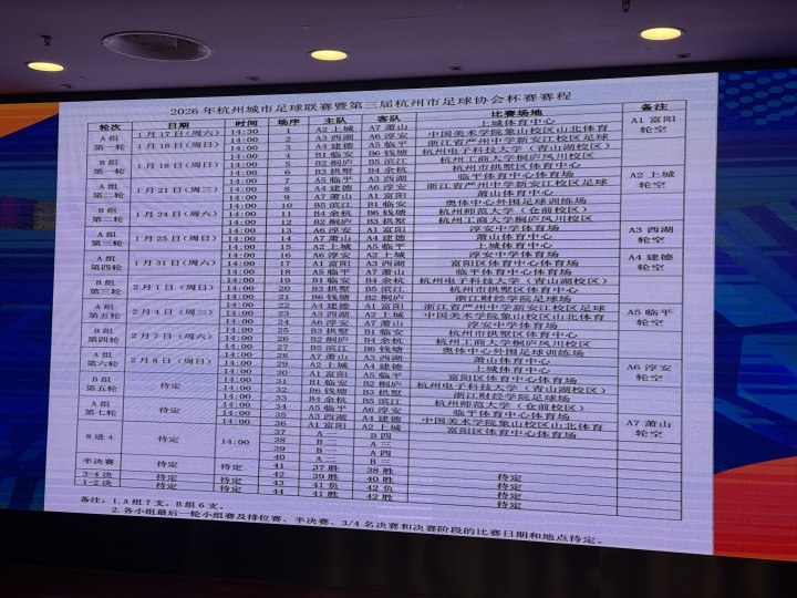 据介绍,2026杭州城市足球联赛也是浙江省城市足球联赛的杭州赛区选拔赛,分为2个小组,采用主客场制,首次将联赛的主场覆盖至全市所有13个区、县(市),每个小组的前四名出线进入八强淘汰赛。