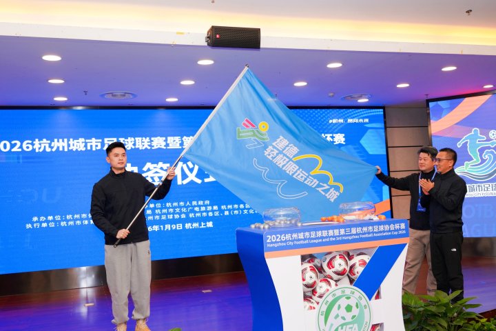 1月9日下午,2026杭州城市足球联赛暨第三届杭州市足球协会杯赛抽签仪式在上城区文化馆举行。