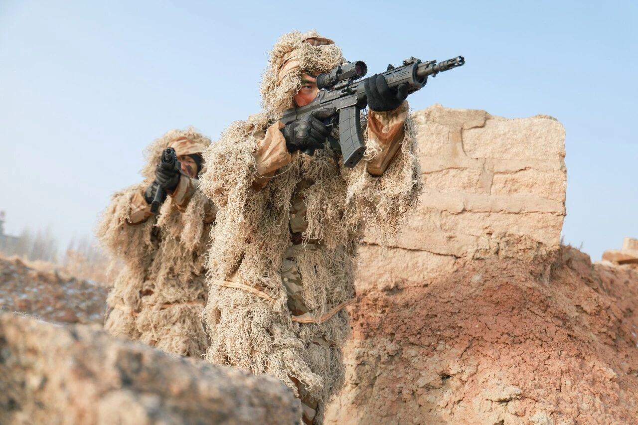 涨知识!特战吉利服和步枪藏着这些门道…… 咱看解放军特战兵训练觉得帅,其实里面全是实打实的实战学问! 先说这吉利服,可不是随便的“草衣服”。特战兵穿的这款荒漠吉利服,纤维纹理跟芦苇、沙土一个色。 战士们往野外一趴,肉眼几乎找不着,就连红外设备都难探测,相当于给战士穿了件“隐形衣”,渗透侦察时太关键了。 再看战术动作,一人瞄准,一人掩护,芦苇荡里低着身子慢慢挪,这叫“交替掩护”,说白了就是一个看路一个防偷袭,野外作战少了这招可不行。 还有手里的新式步枪,装了光学瞄准镜,大冷天里能快速锁定目标,枪身还做了防沙设计,戈壁里的风沙根本进不去,专挑实战里能用得上的功能来造。 咱的特战兵就是靠着这些实打实的装备和战术训练,练出了保家卫国的硬本事,这才是最让人安心的!🇨🇳 军事