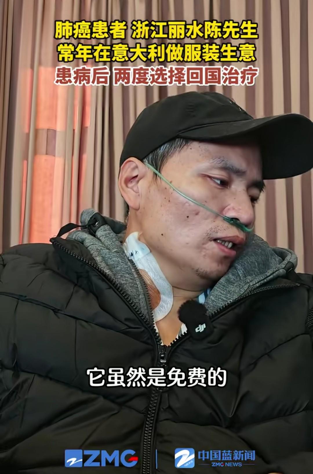“它虽然是免费的,但是它没有治疗方案!”这是一个在意大利做服装生意的杭州男子,回国治疗肺癌时说的话。 因为生意的原因,他常年住在意大利,在意大利检查出肺癌,他问医生要怎么治疗,医生告诉他先等着。 于是这名男子果断选择回国到杭州治疗。他已经两次回国治疗了。 他说他现在感觉很好,既来之则安之。 有人问他为什么不在意大利治疗听说那边免费,他说虽然那边免费,但是没有治疗方案,他感觉不踏实。