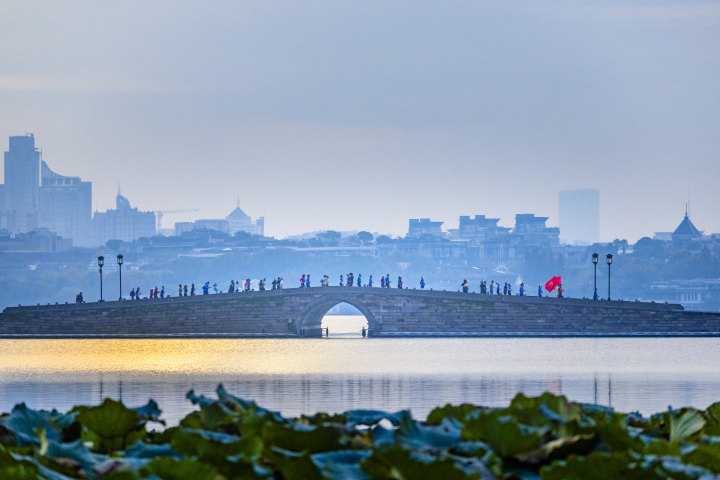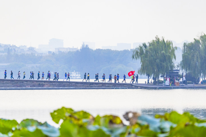 一次在西湖边的晨跑后,她写道:我好像在画中跑步,西湖太美了!